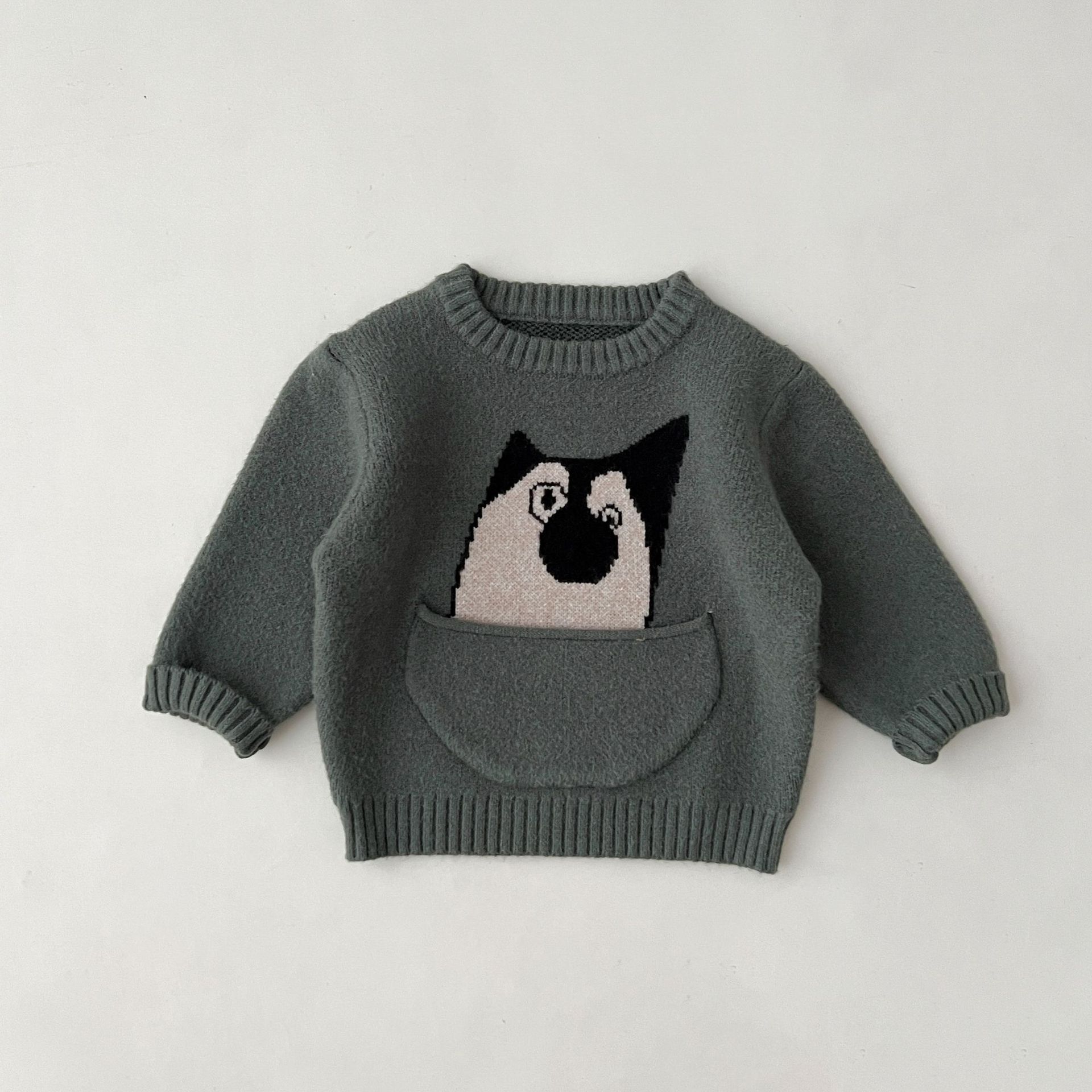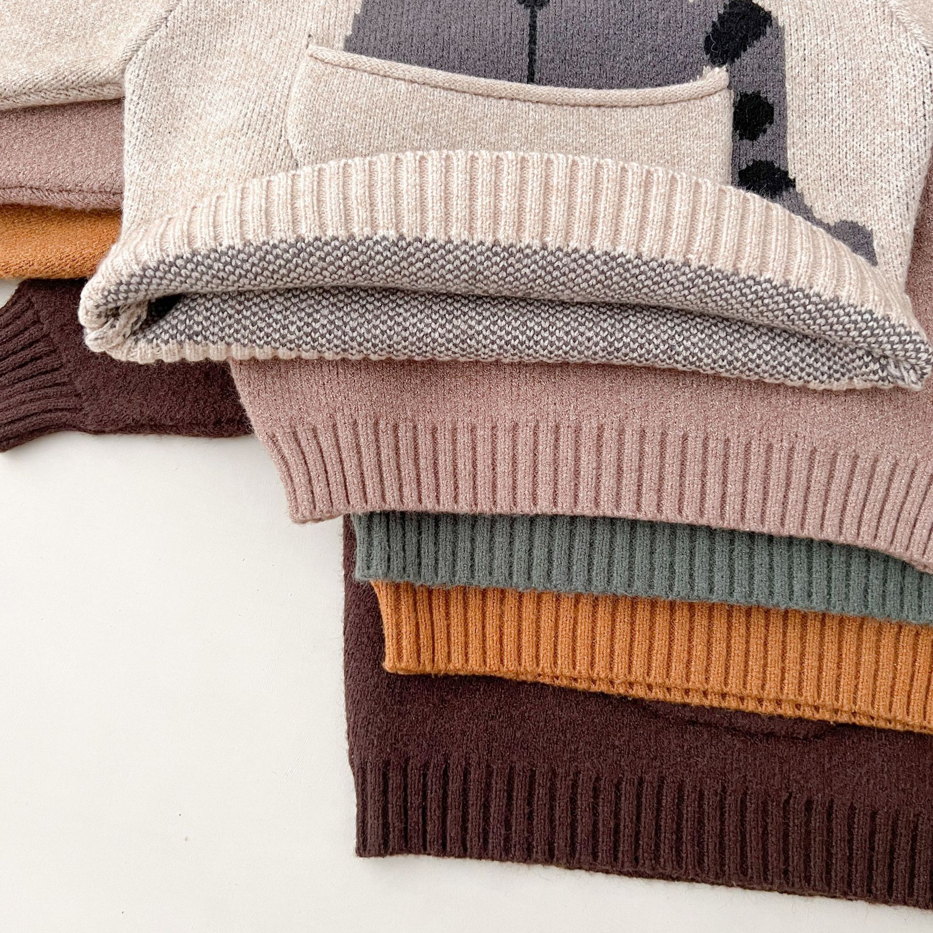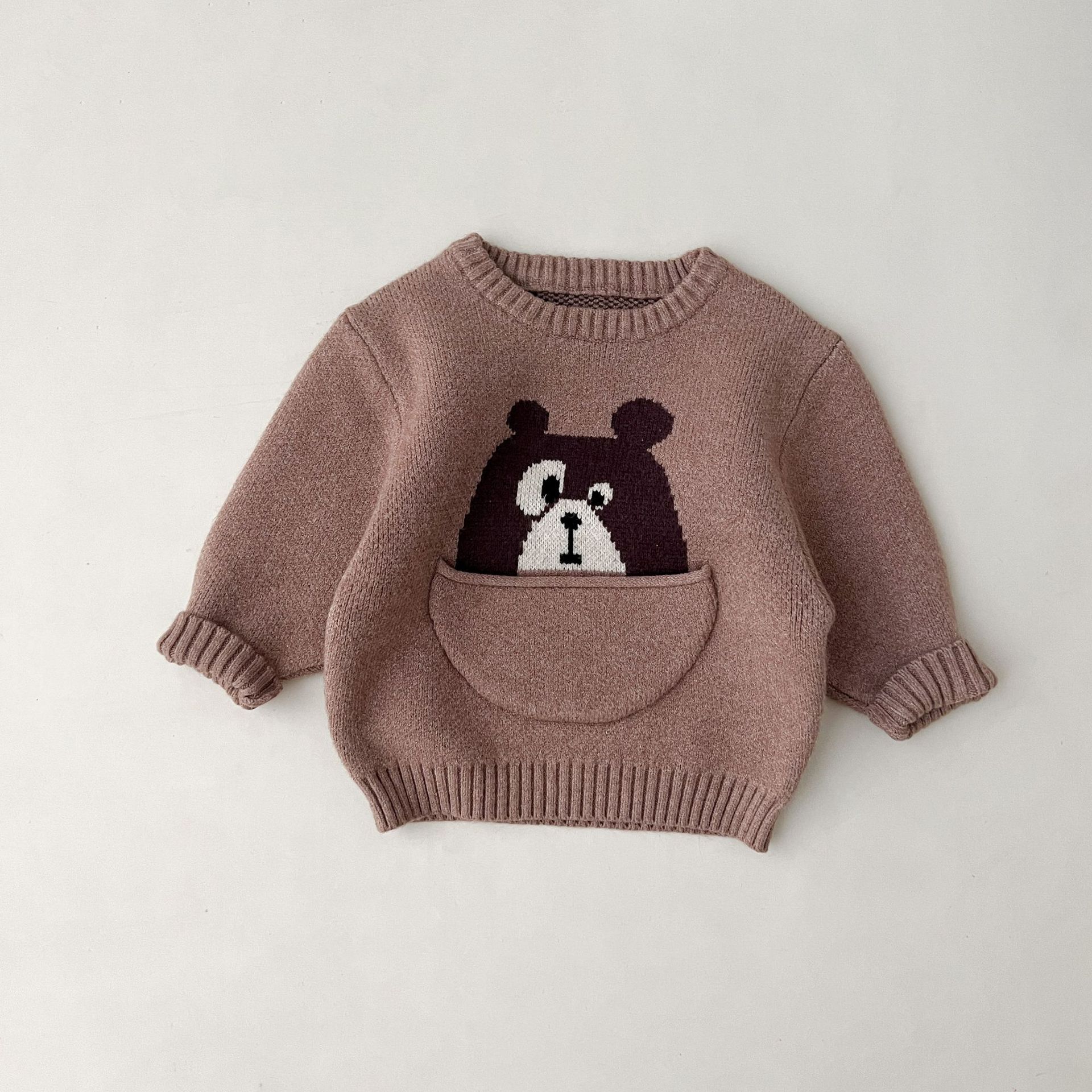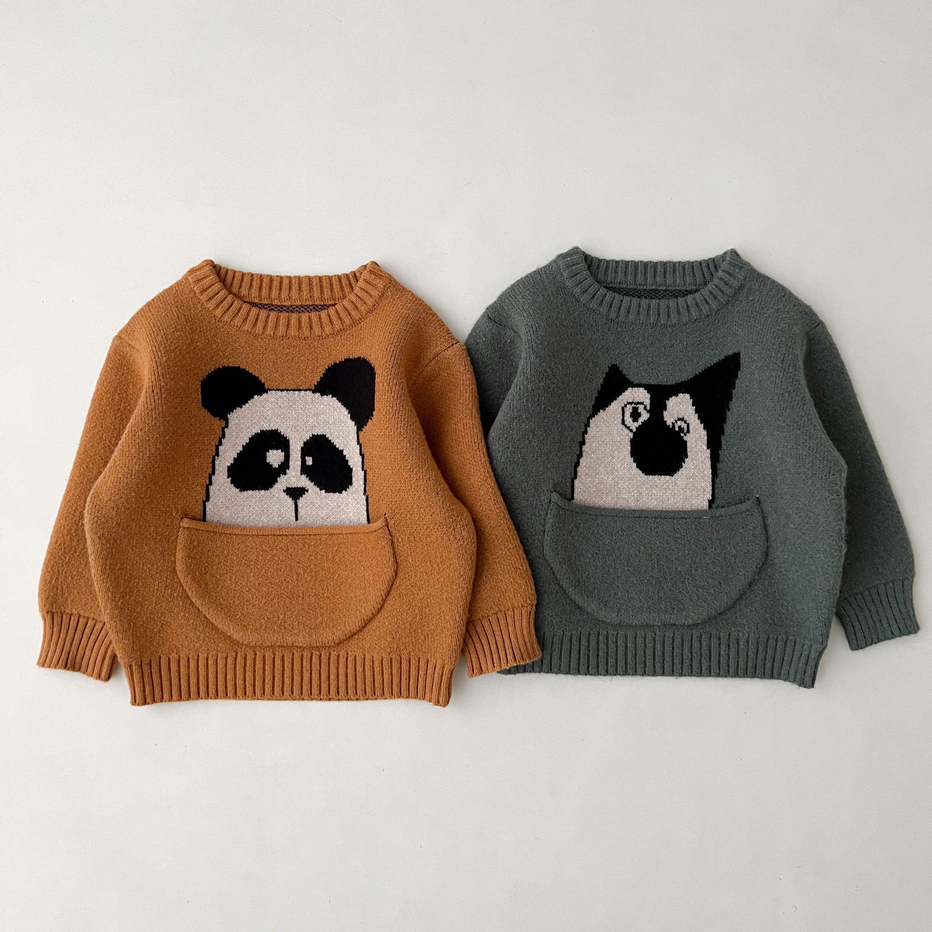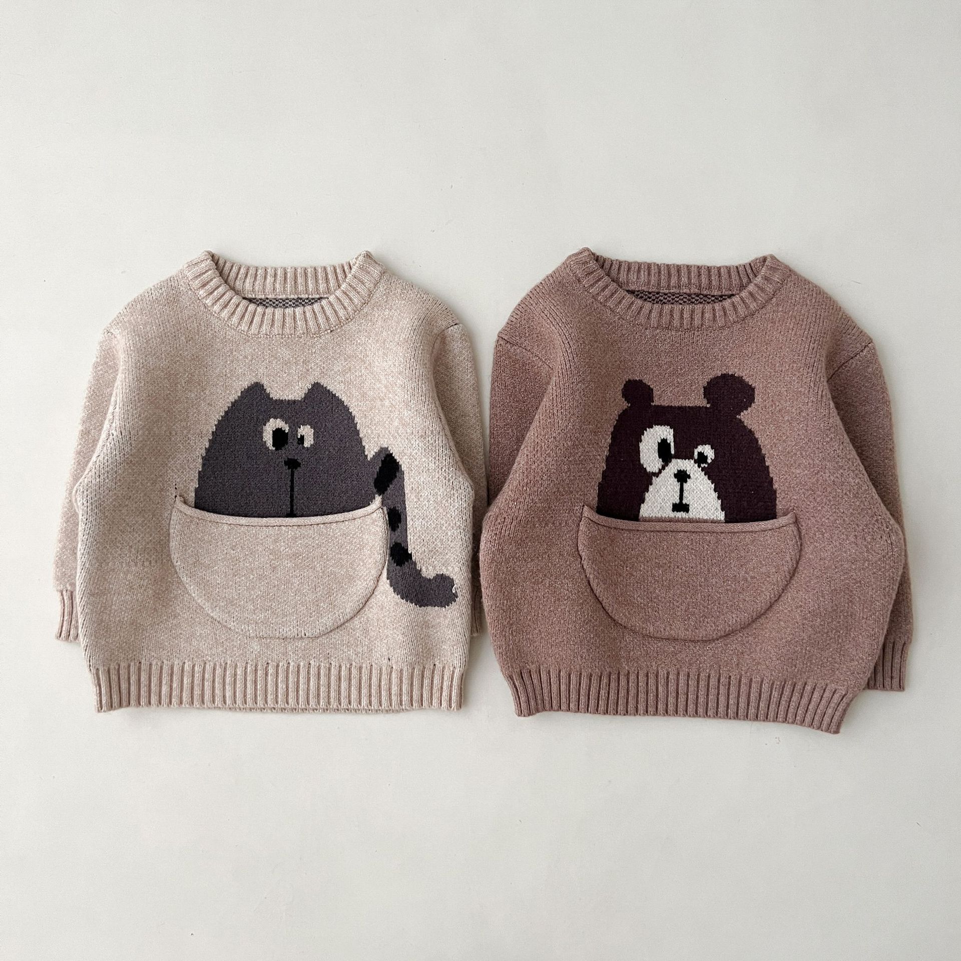 어린이 스웨터 봄 착용 한국 스타일 소년 소녀 유행 서양 스타일 만화 인쇄 니트웨어 느슨한 포켓 탑