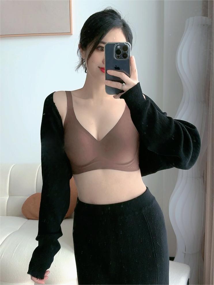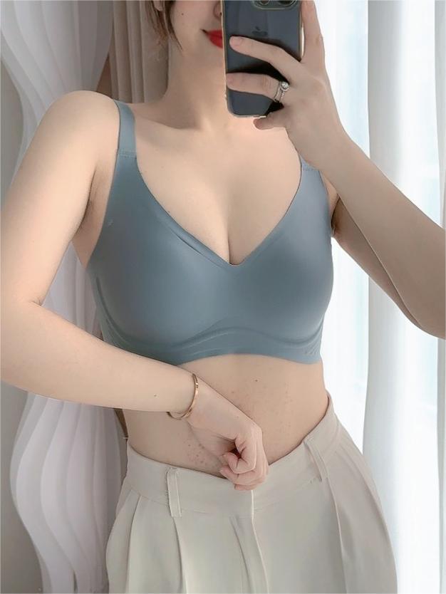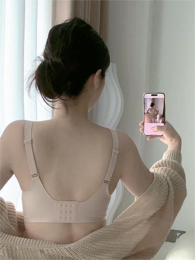 프렌치 스타일 젤리 면 비 마킹 브라 푸시 업 편안한 소프트 지원 얇은 비 스틸 링 고정 컵 속옷 여성용 작은 가슴