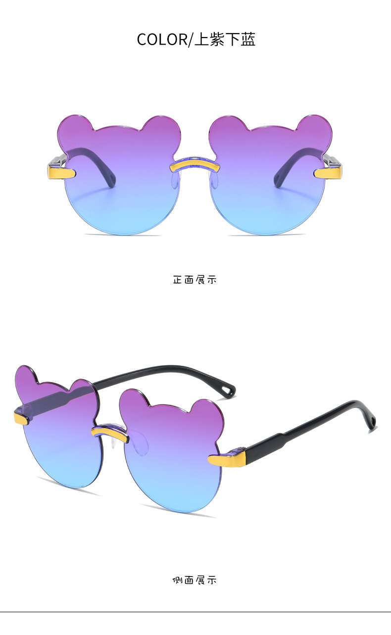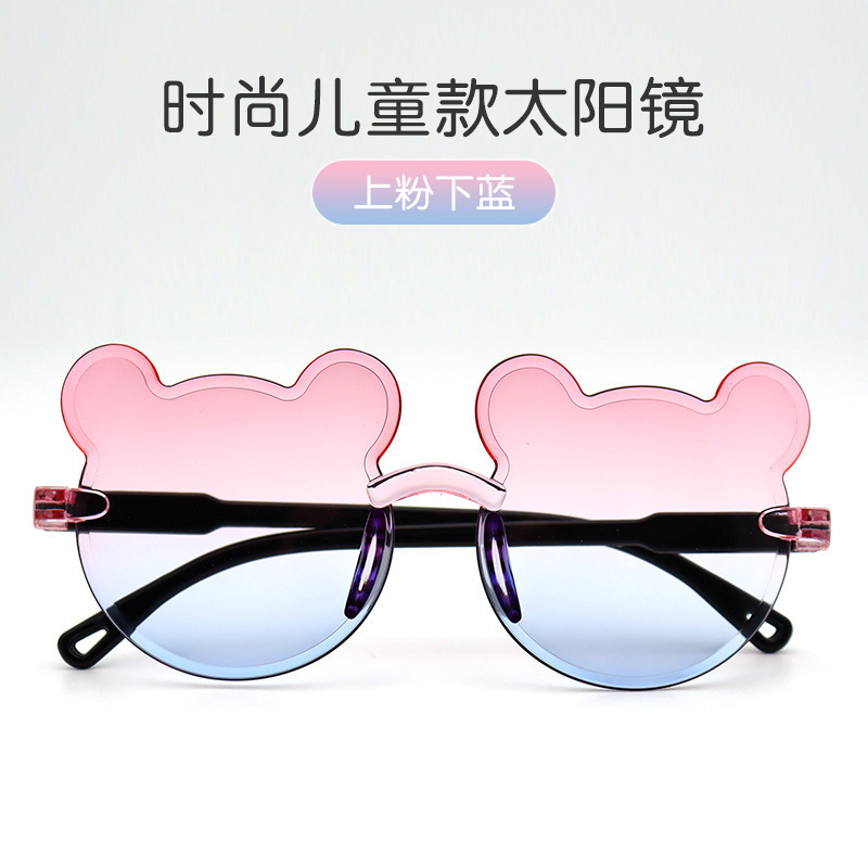 어린이 안경 선글라스 소년과 소녀를위한 UV 보호 패션 귀여운 아기 곰 귀 선글라스 모델링 사진