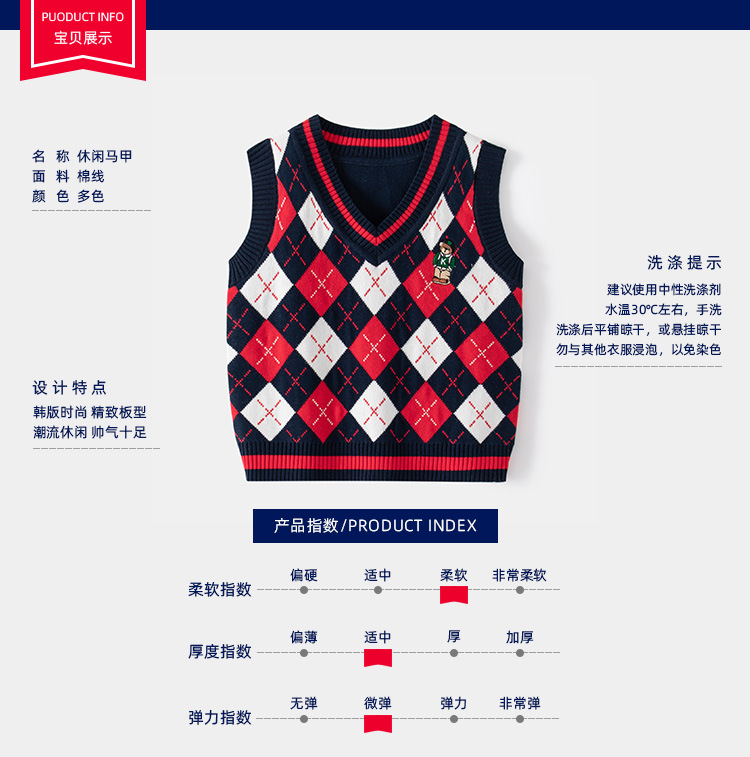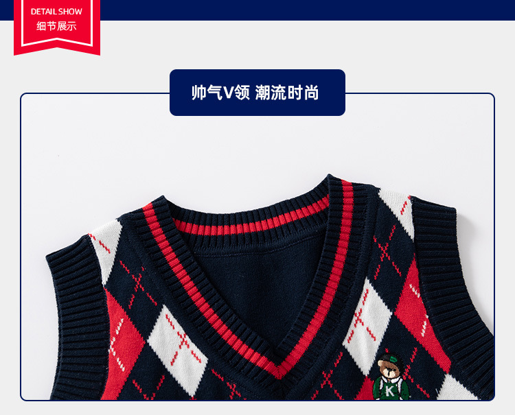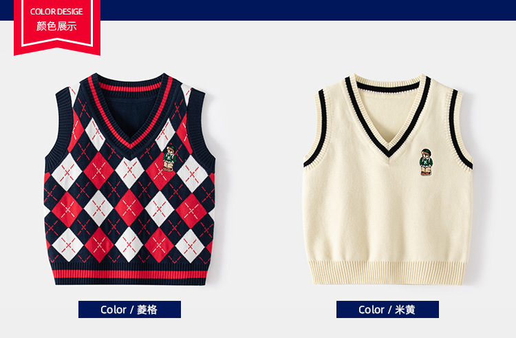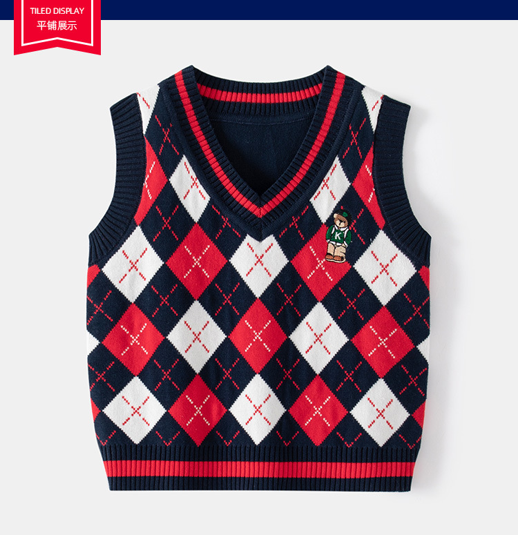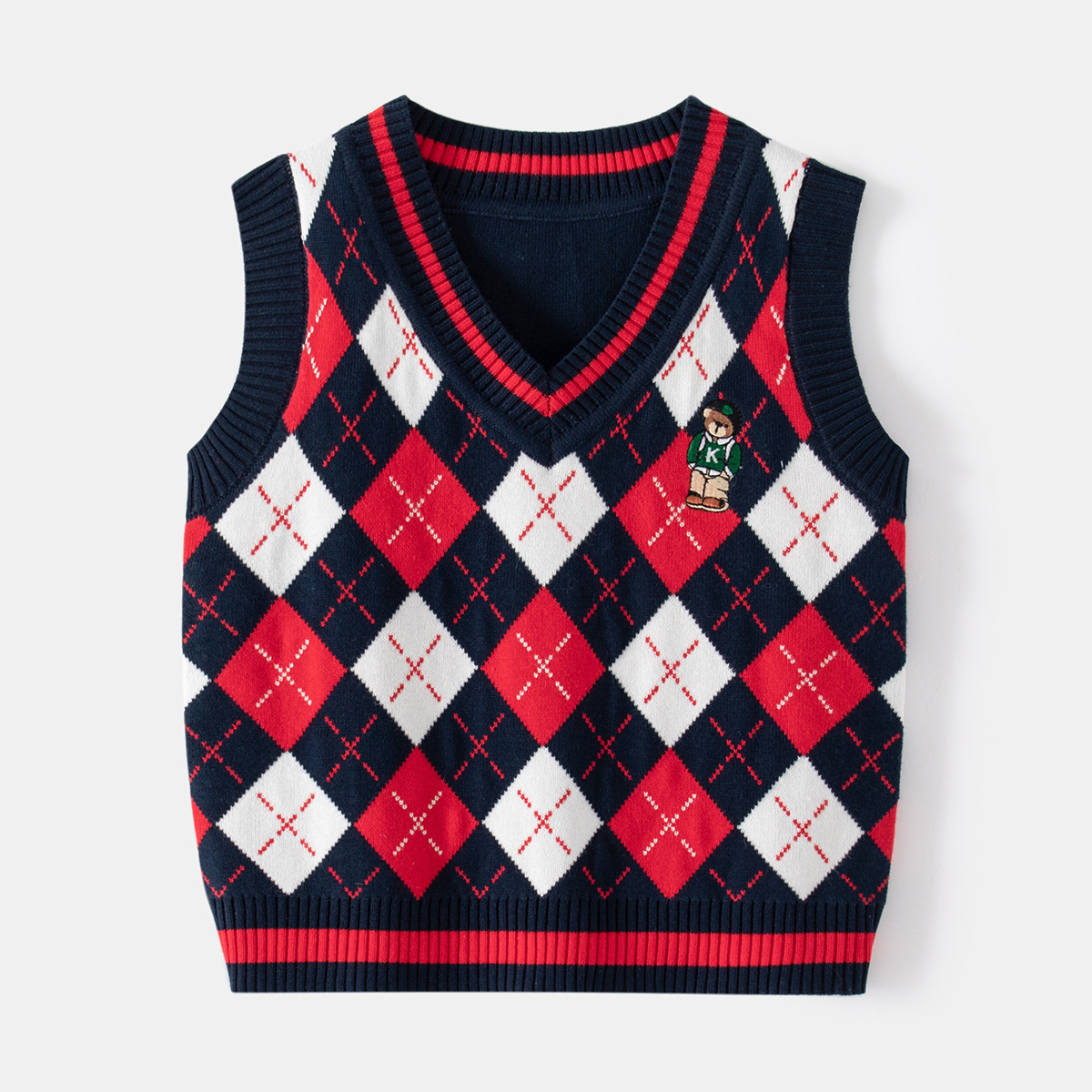 대학 스타일 캐주얼 소년 스웨터 조끼 후드가 아닌 어린이 스웨터 조끼 트렌디 잘 생긴 격자 무늬 조끼스토어 가기