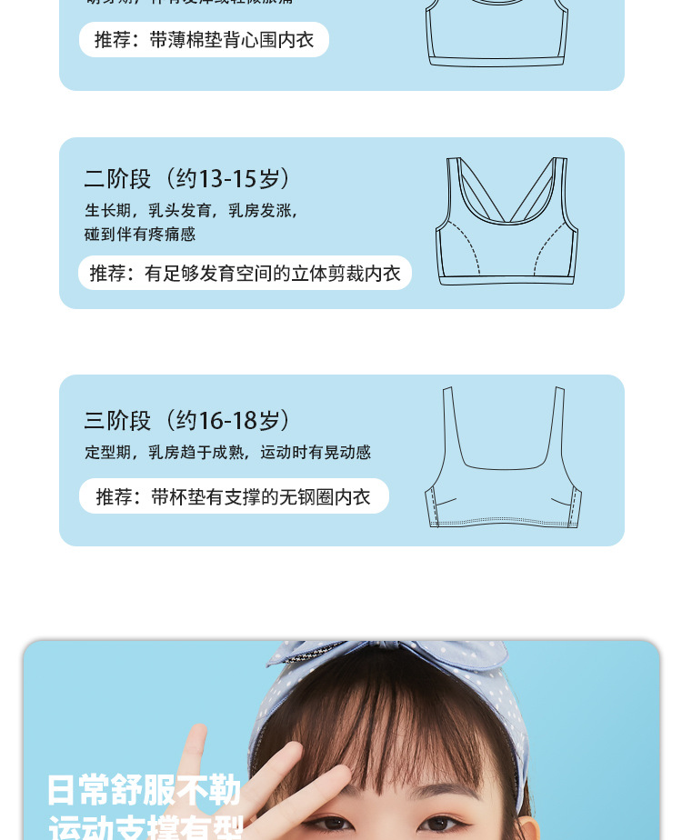 여자 속옷 고등학교 중학교 학생 브래지어 사춘기 없음 강철 반지 면 스포츠 조끼 안티 범프스토어 가기