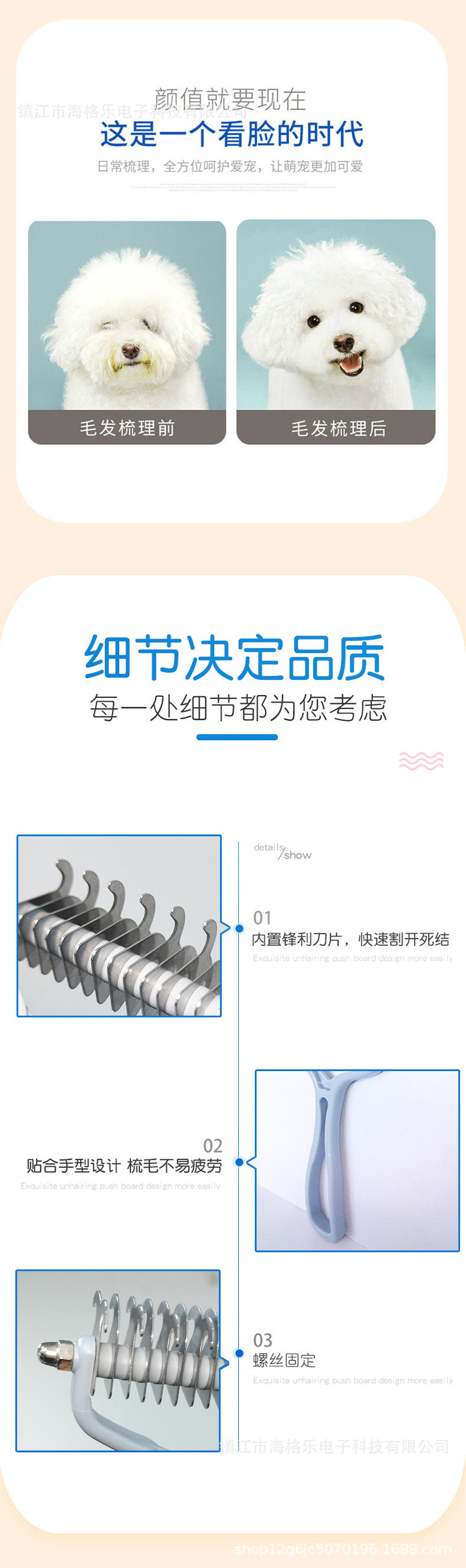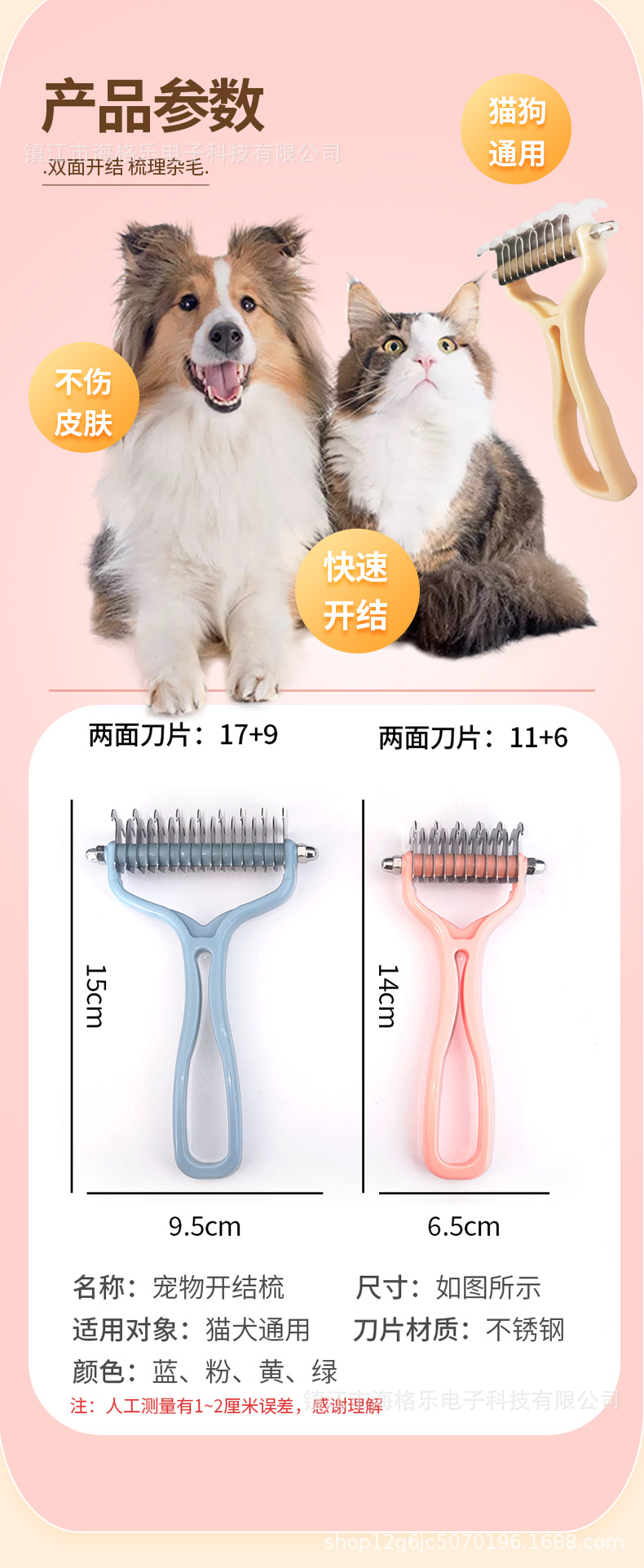 애완 동물 양면 오픈 매듭 빗 고양이 개 스테인레스 스틸 투인원 오픈 매듭 빗 마카롱 휴대용 애완 동물 빗스토어 가기
