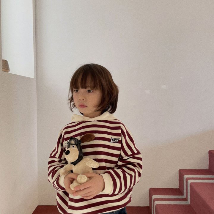 아동복 코트 봄 한국 2023 신상품 스트라이프 스몰 라벨 후드 스웨터 코트 소년과 소녀를위한 봄과 가을 티셔츠스토어 가기