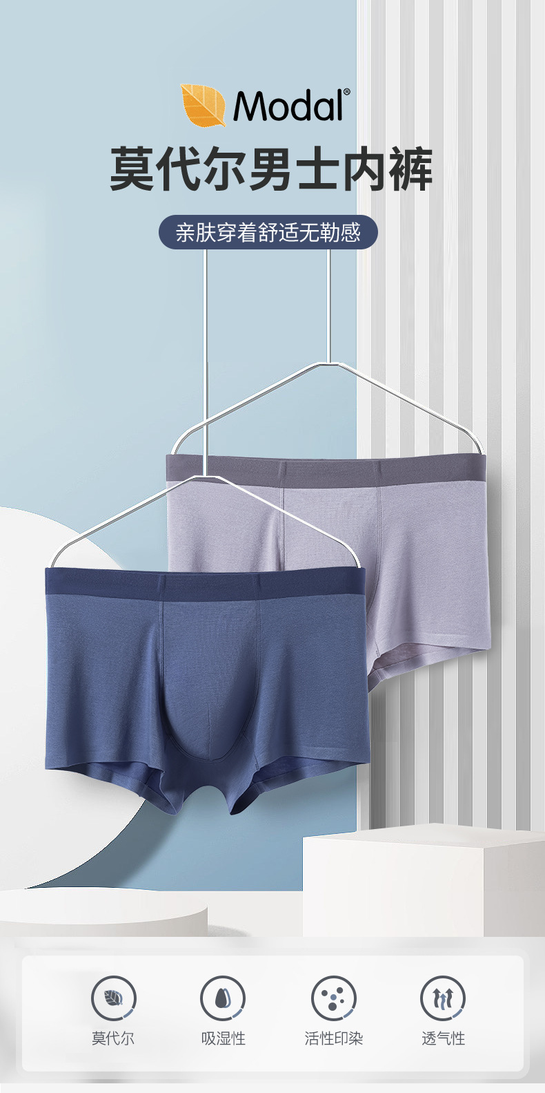 일체형 무봉제 남성 삼각팬티 신상 60S 모달 속옷 남성 단색 중간 허리 반바지 도매 여름용스토어 가기