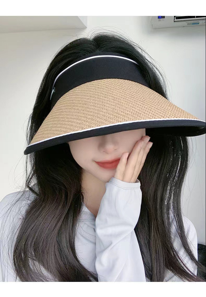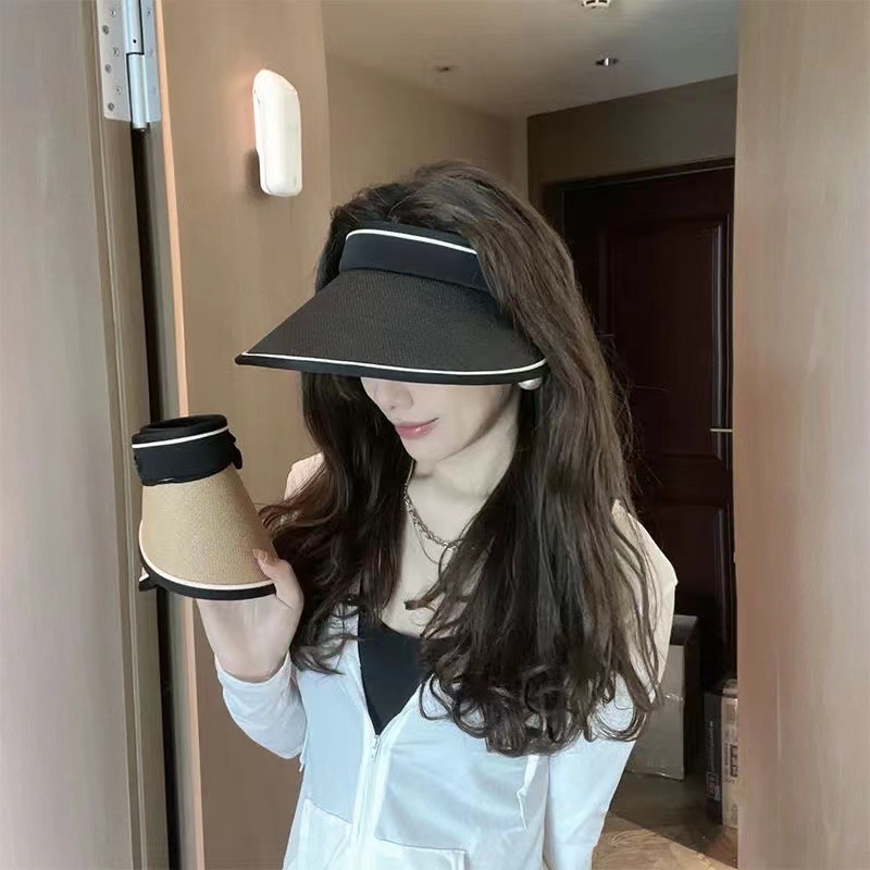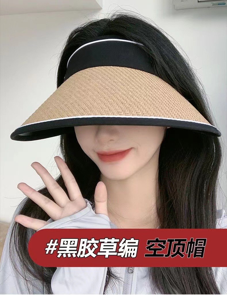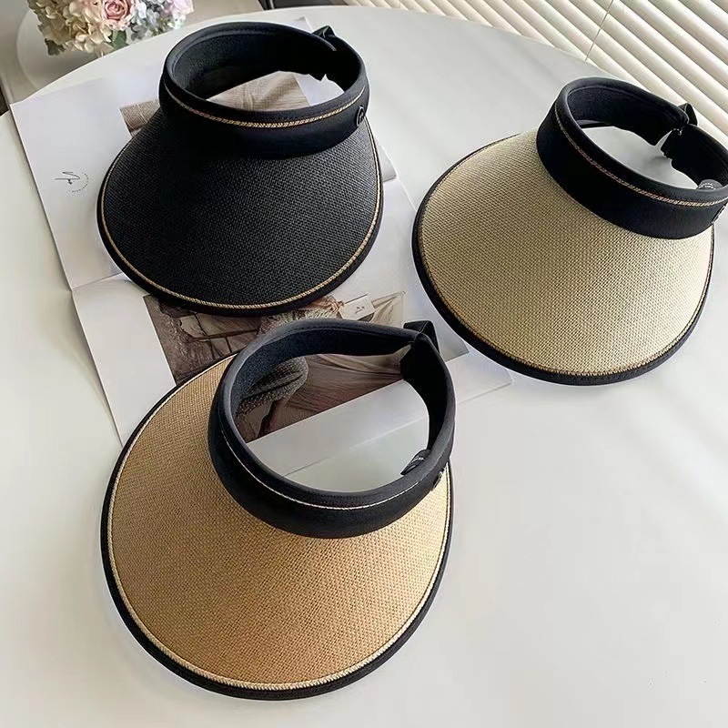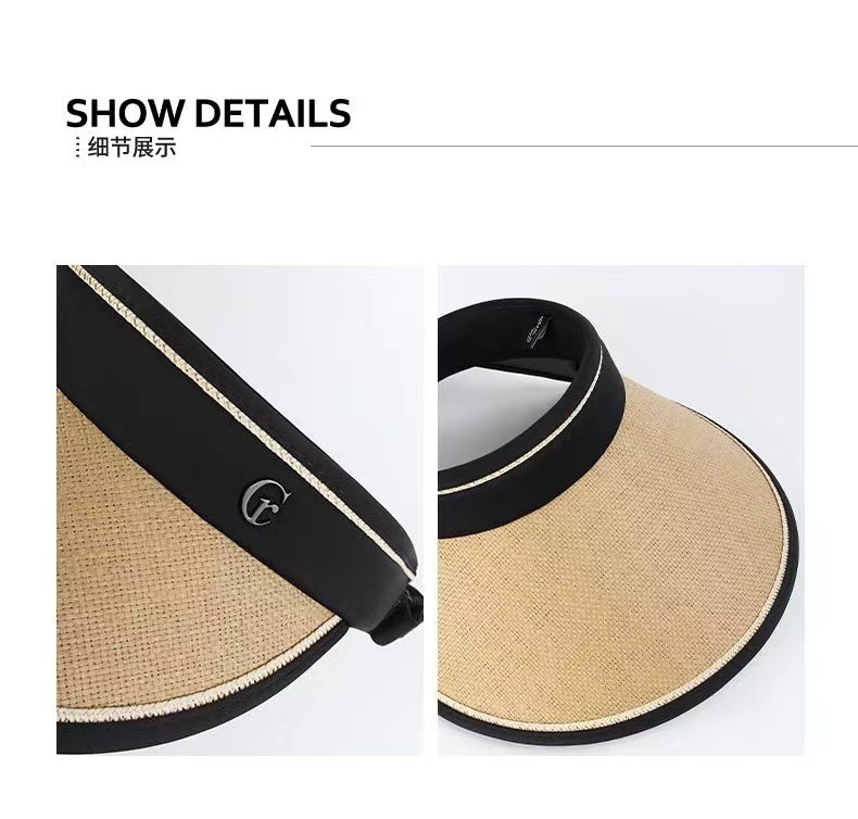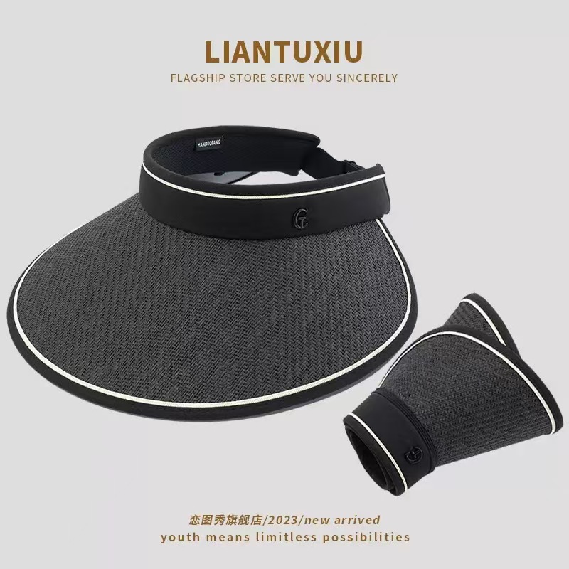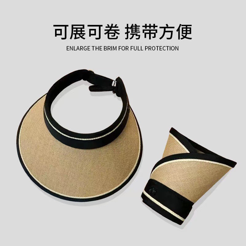 빈티지 스타일의 검정색 자외선 차단 모자, 접이식 얼굴 가리개 밀짚모자, 자전거 타기용 통기성 접이식 챙넓은 모자스토어 가기