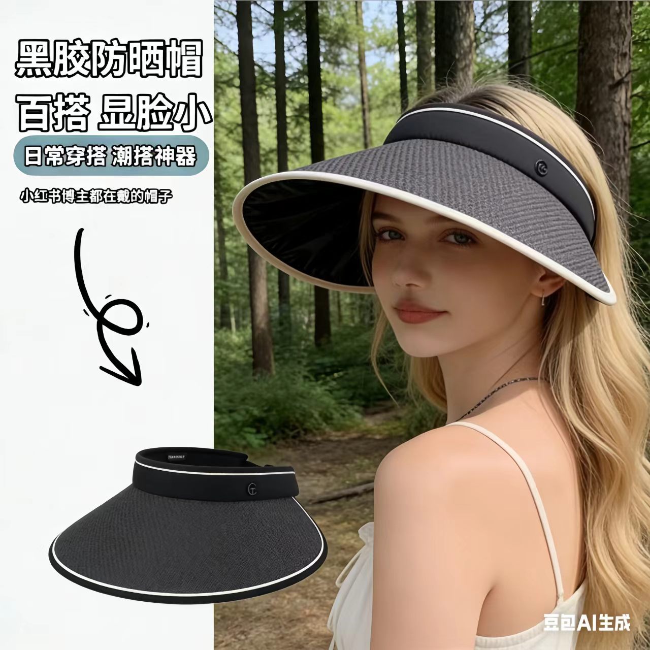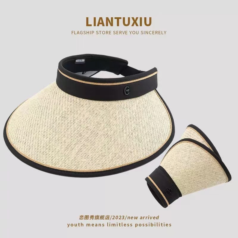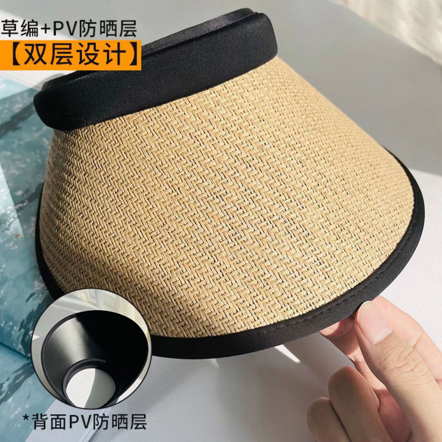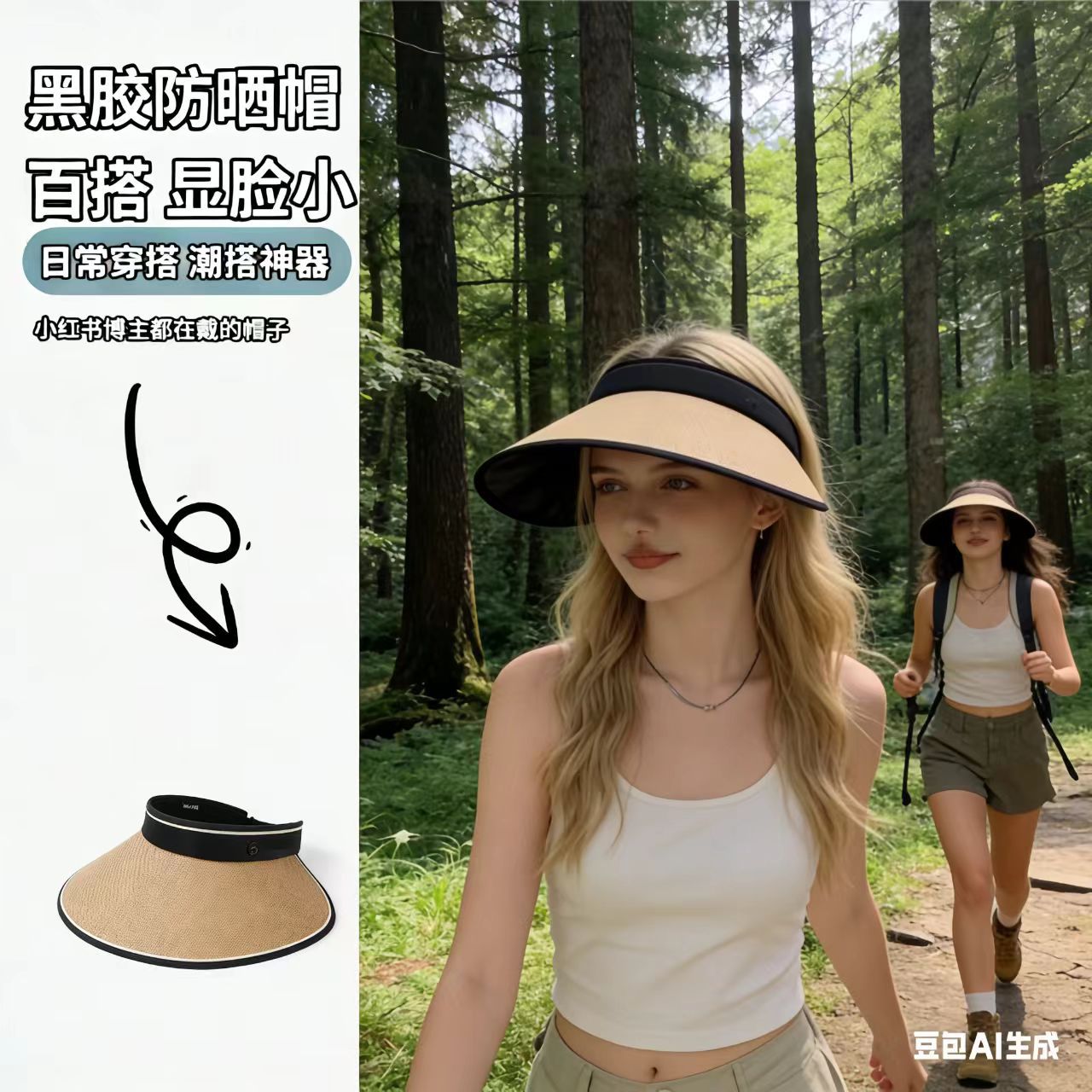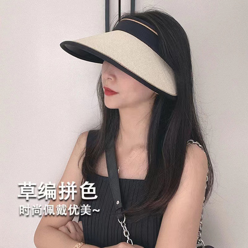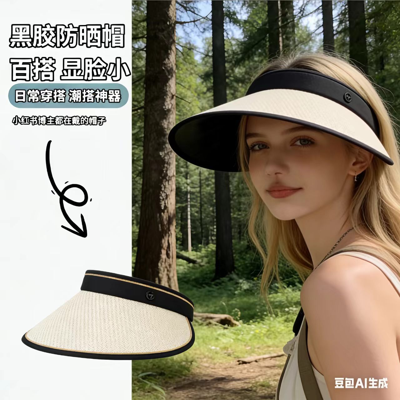 빈티지 스타일의 검정색 자외선 차단 모자, 접이식 얼굴 가리개 밀짚모자, 자전거 타기용 통기성 접이식 챙넓은 모자스토어 가기