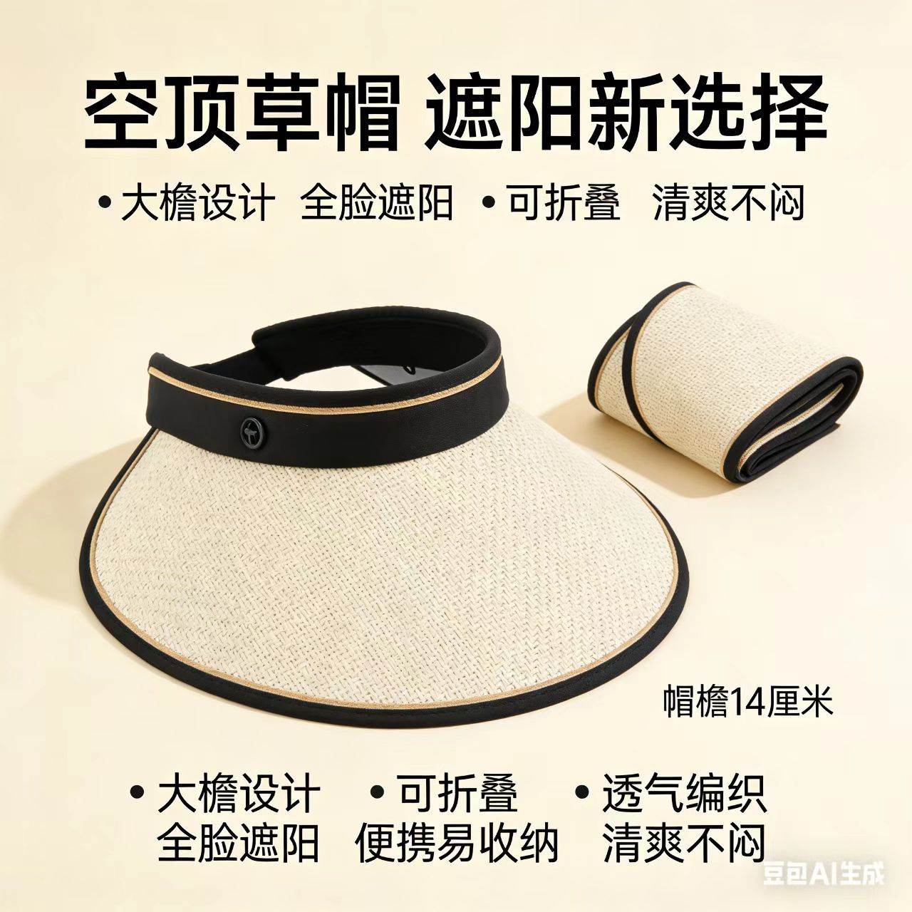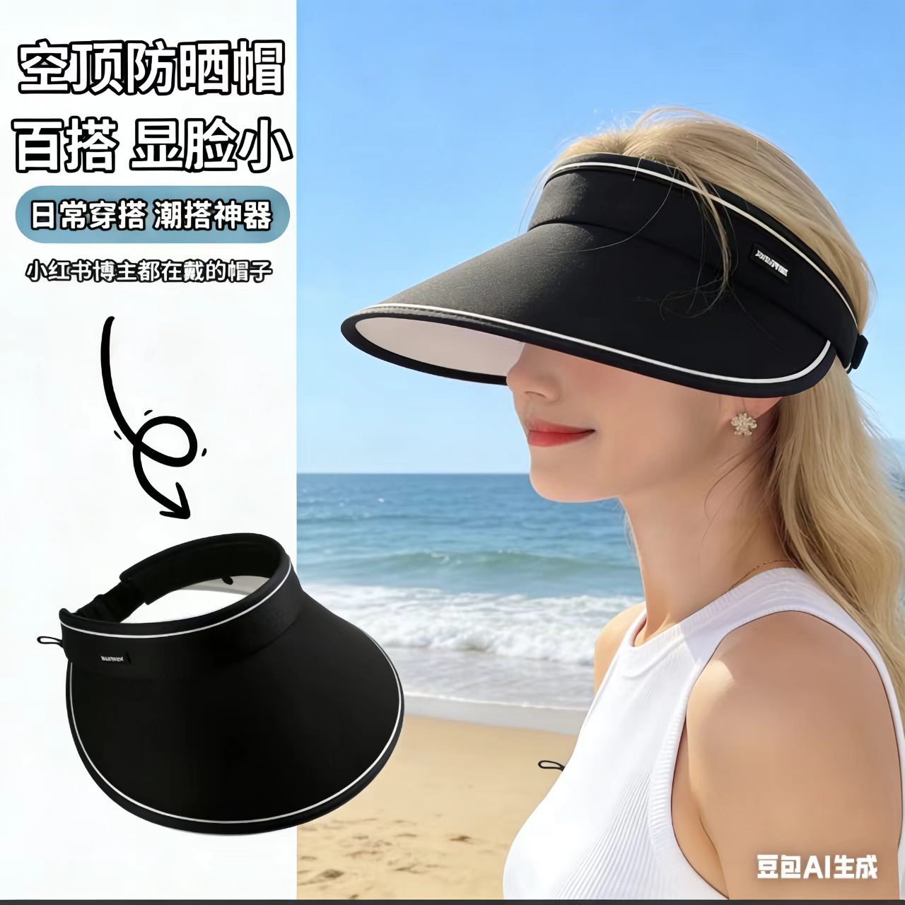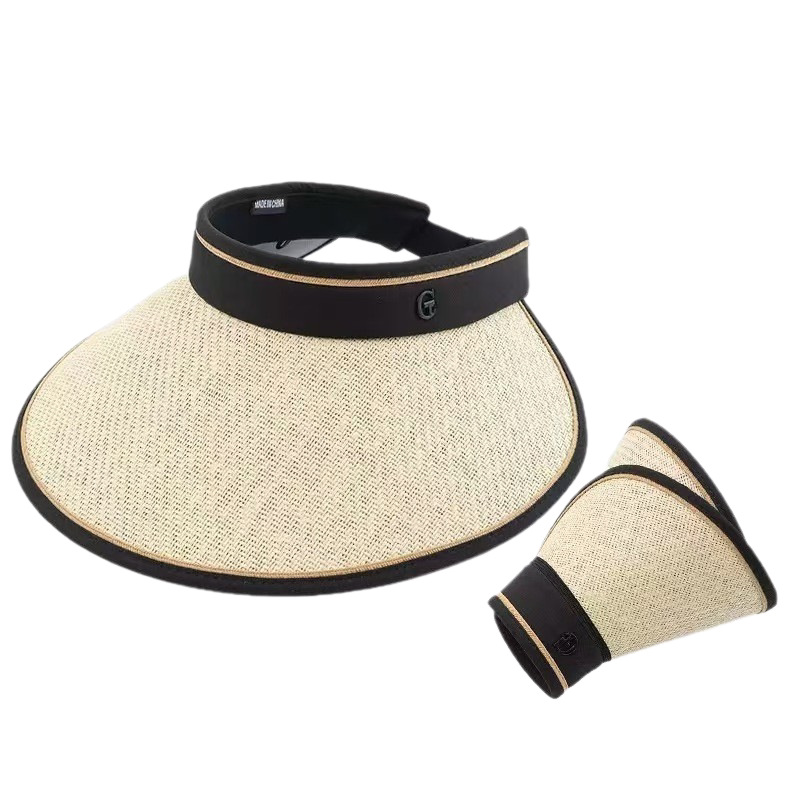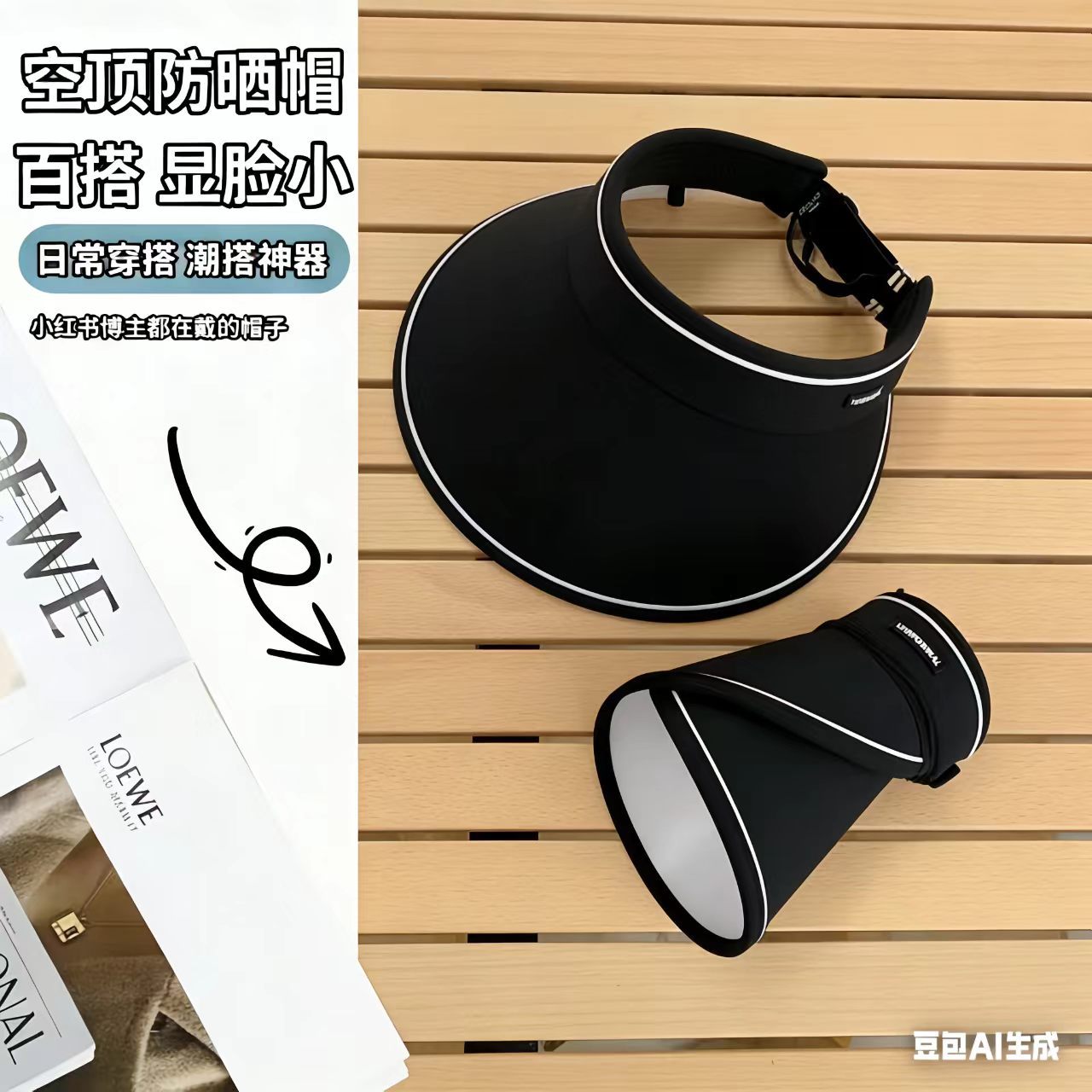 빈티지 스타일의 검정색 자외선 차단 모자, 접이식 얼굴 가리개 밀짚모자, 자전거 타기용 통기성 접이식 챙넓은 모자