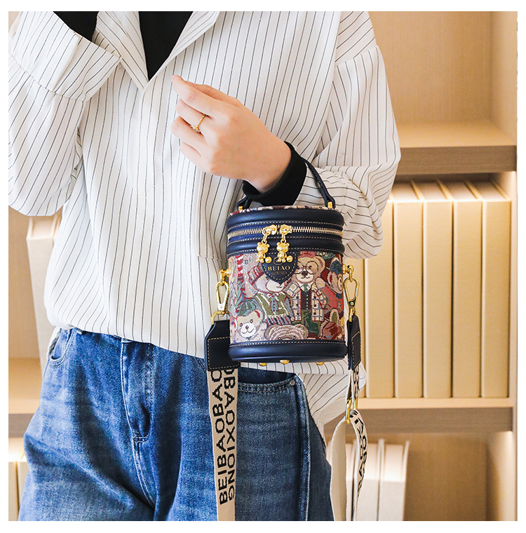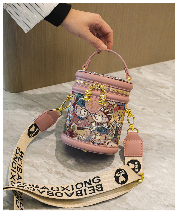 북쪽 가방 소스 공장 가방 패션 실린더 가방 크로스 바디 여성 가방 귀여운 곰 버킷 가방스토어 가기