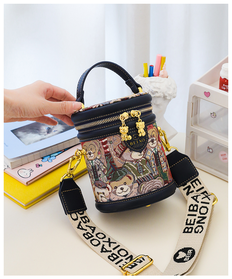 북쪽 가방 소스 공장 가방 패션 실린더 가방 크로스 바디 여성 가방 귀여운 곰 버킷 가방