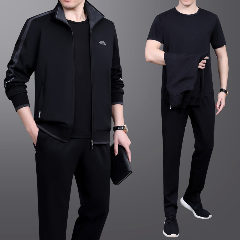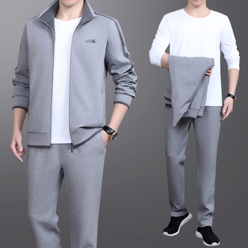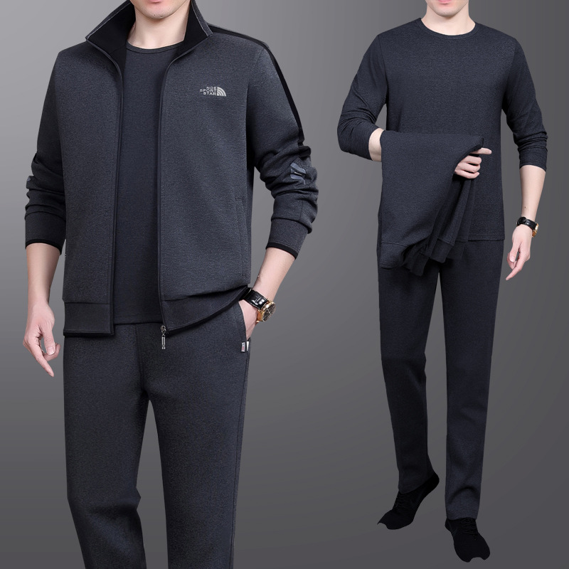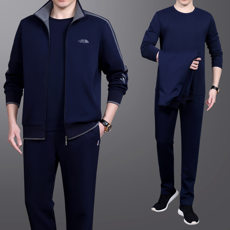 중년과 노인 남자의 봄과 가을 플러스 사이즈 스포츠웨어 남자의 아침 운동 스포츠웨어 캐주얼 아빠의 복장을위한 3 피스 스포츠 세트