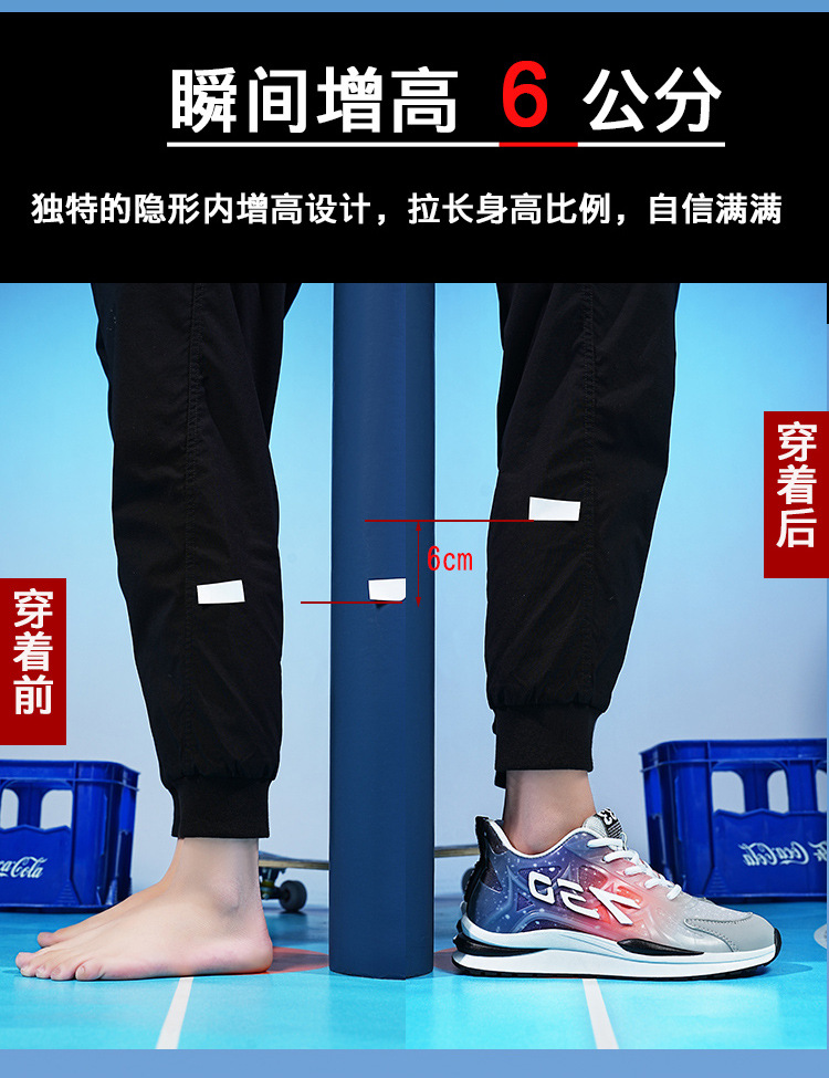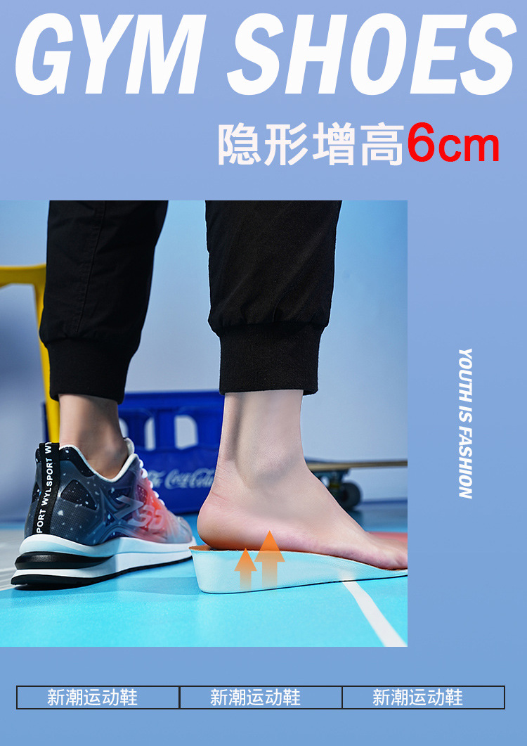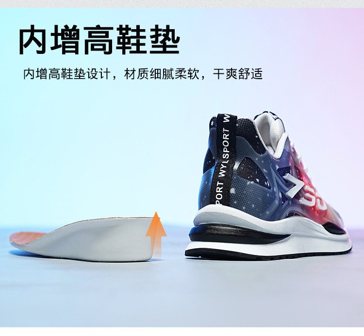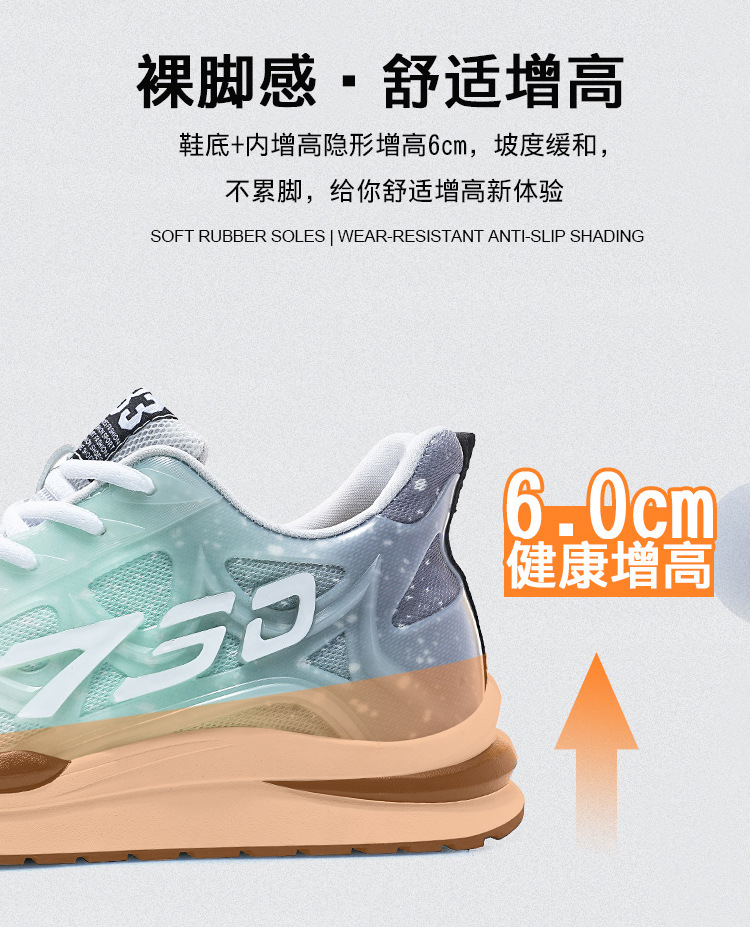 2025년 신형 스포츠 캐주얼 남성 신발, 내부 높이 증가 6CM, 야외 스포츠 신발, 남성용 그라데이션 컬러 트렌디 소형 신발스토어 가기