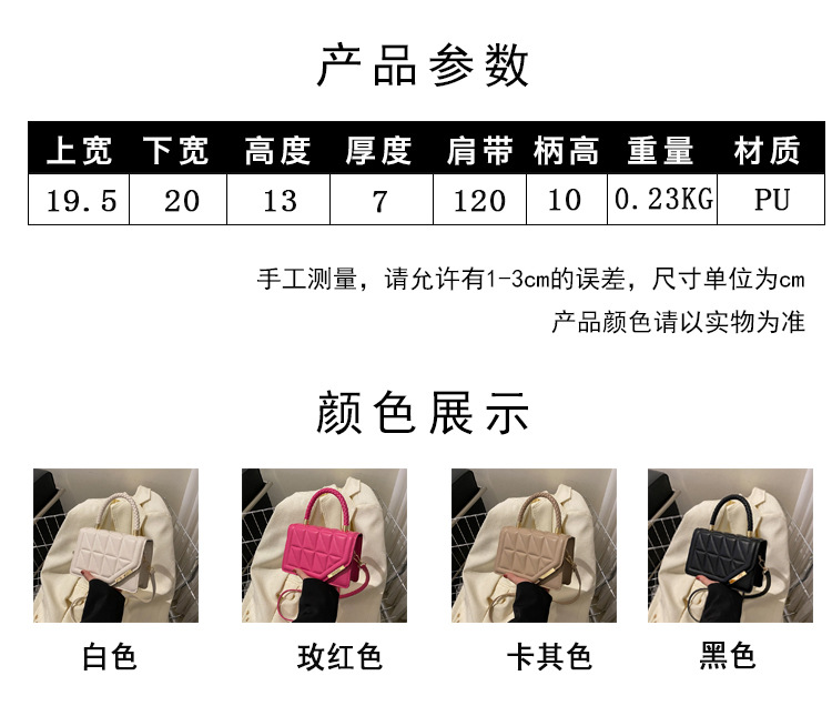 마름모꼴 질감 가방 여자의 2023 새로운 유행 외국 스타일 휴대용 작은 사각형 가방 유행 체인 단색 어깨 크로스 바디 가방