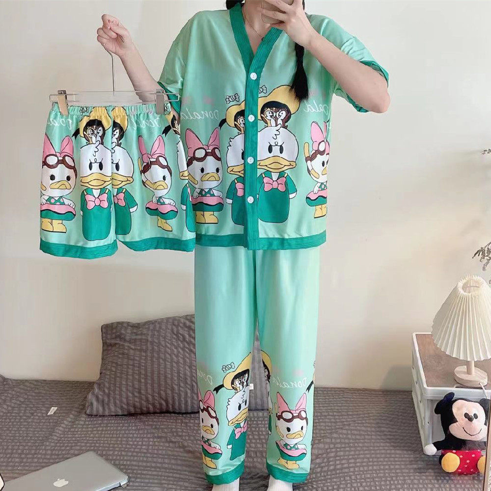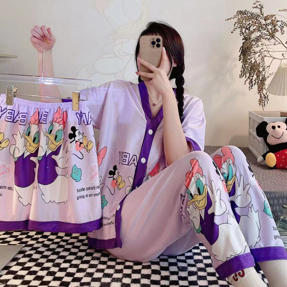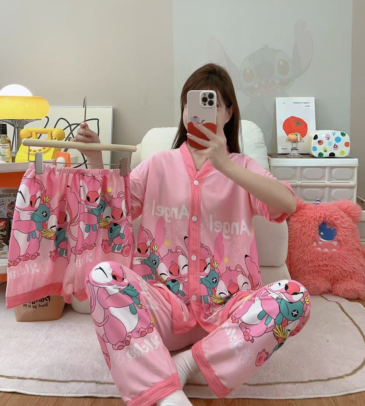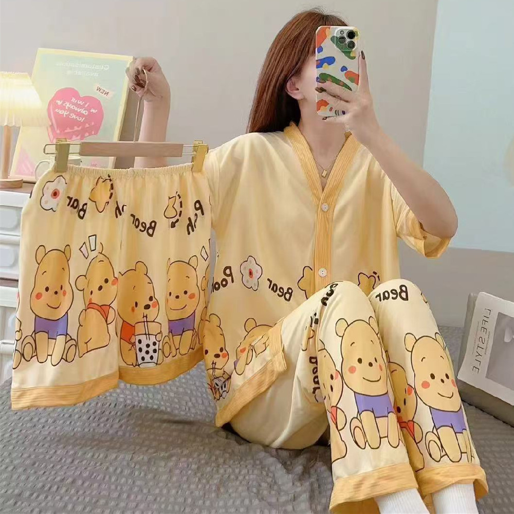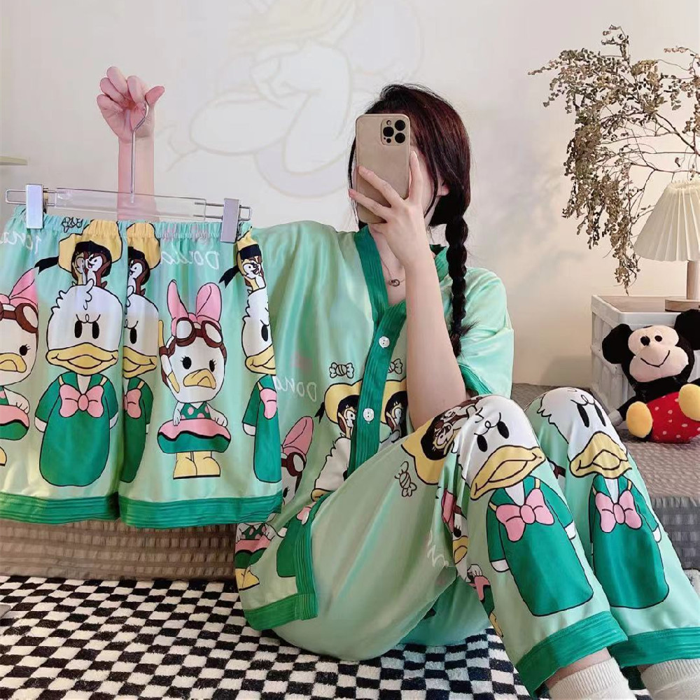 쓰리 피스 홈 의류 대외 무역 반팔 가디건 봄과 여름 얇은 만화 학생의 샤넬 스타일 아웃웨어 여성 잠옷스토어 가기