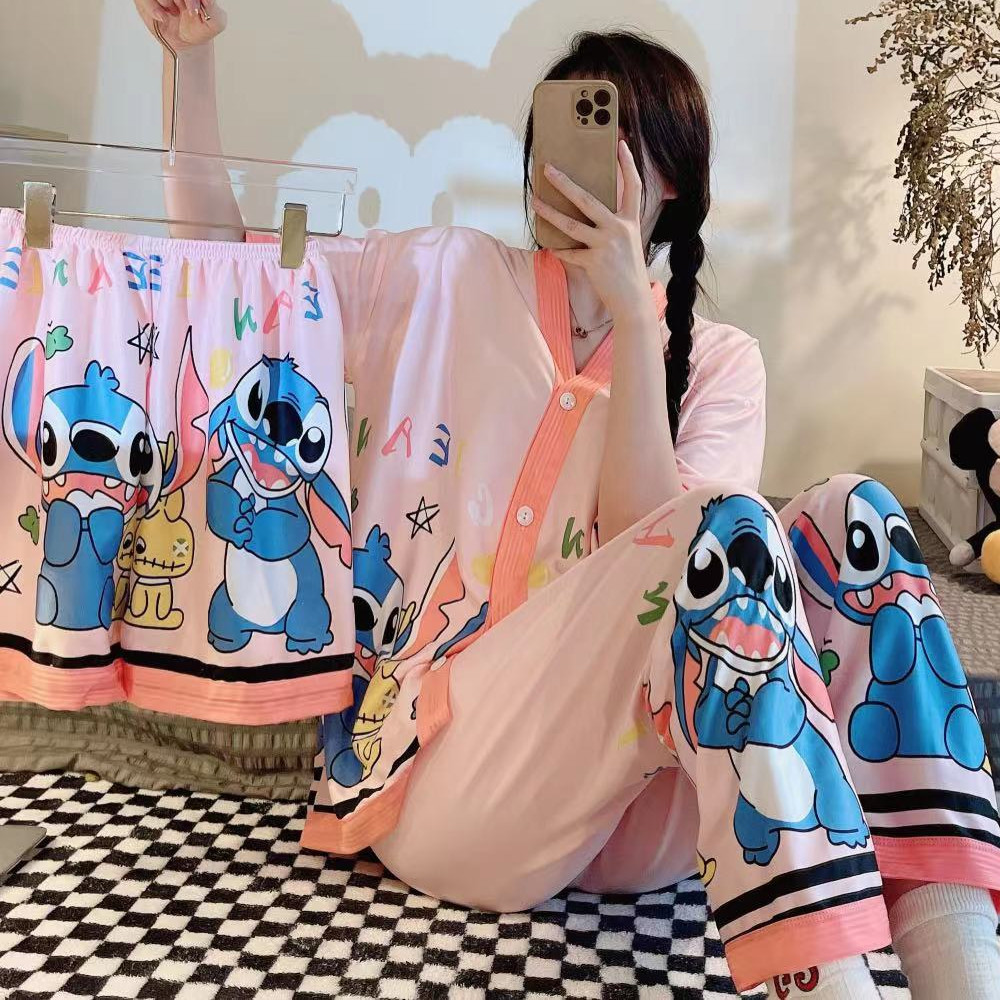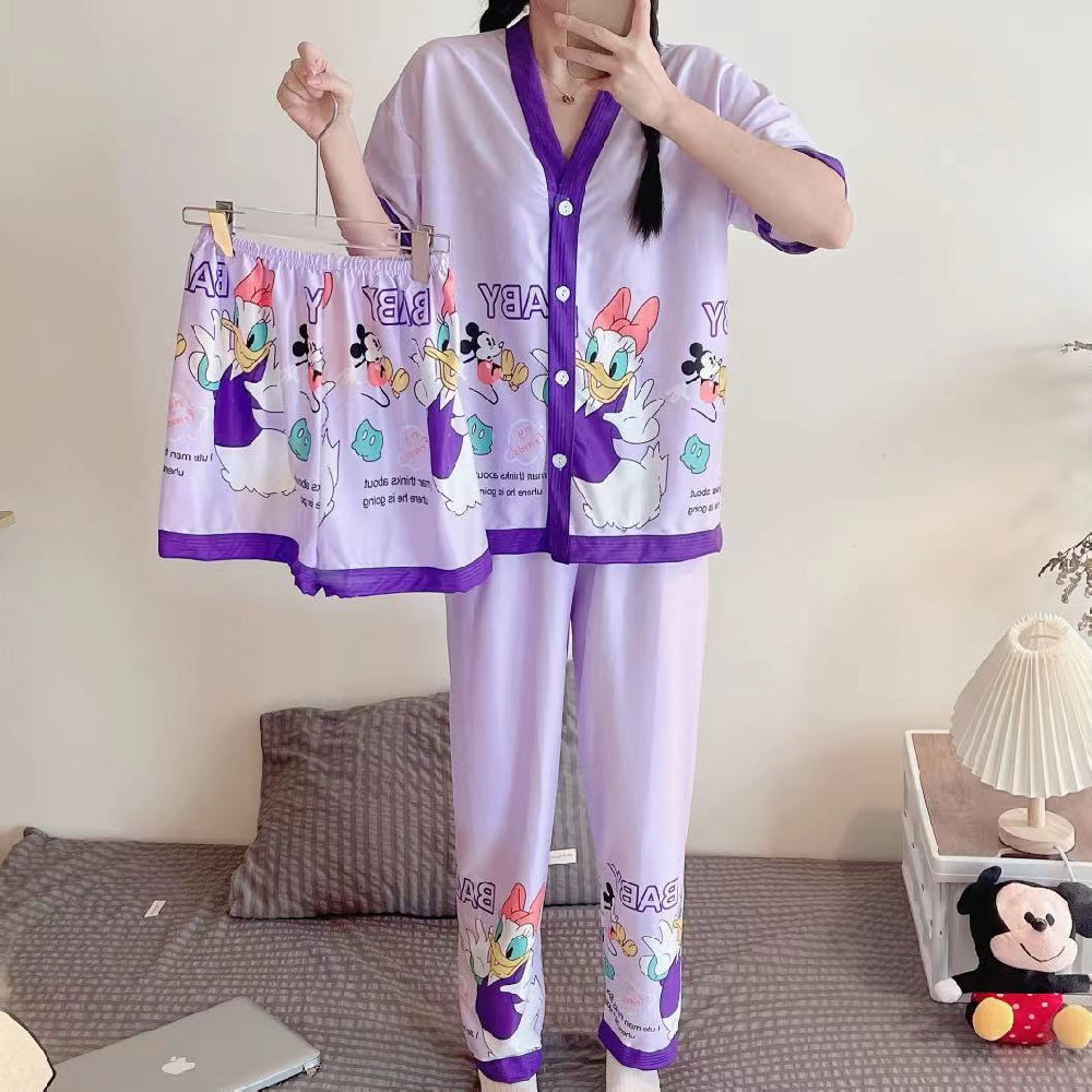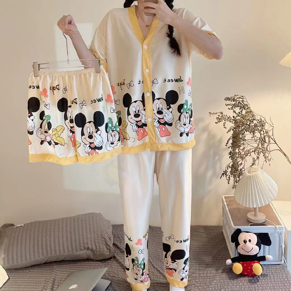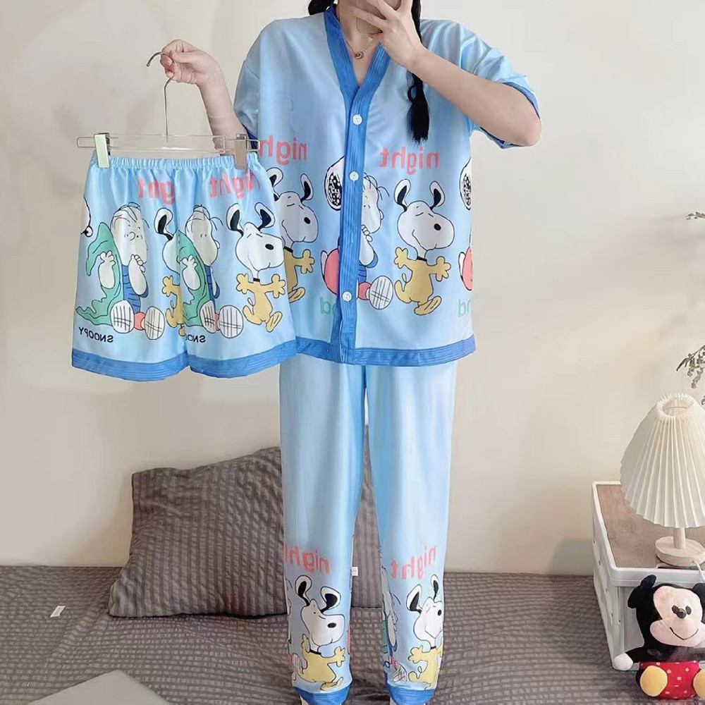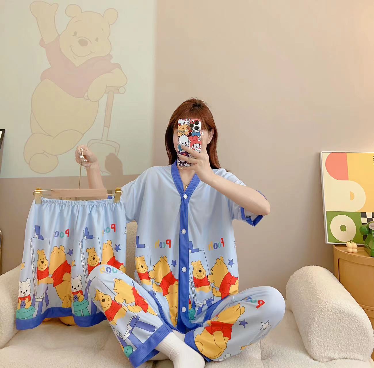 쓰리 피스 홈 의류 대외 무역 반팔 가디건 봄과 여름 얇은 만화 학생의 샤넬 스타일 아웃웨어 여성 잠옷스토어 가기