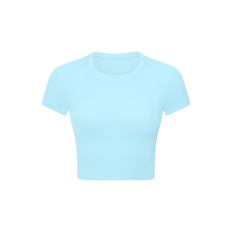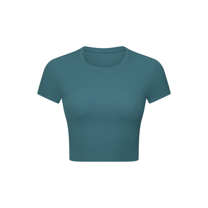 새로운 SPR 라운드 넥 슬림핏 슬리밍 스포츠 반팔 여성용 골지 고강도 스트레치 쉐이핑 피트니스 요가 세트스토어 가기