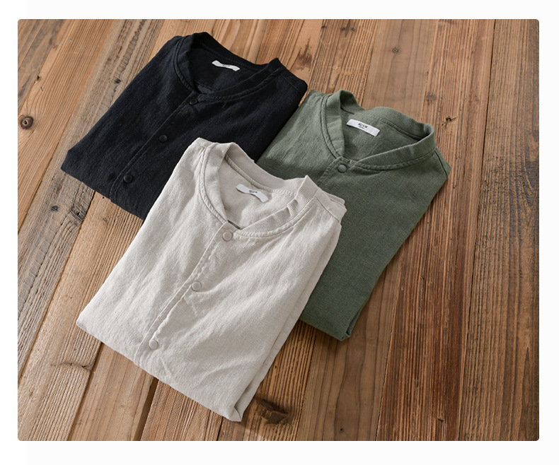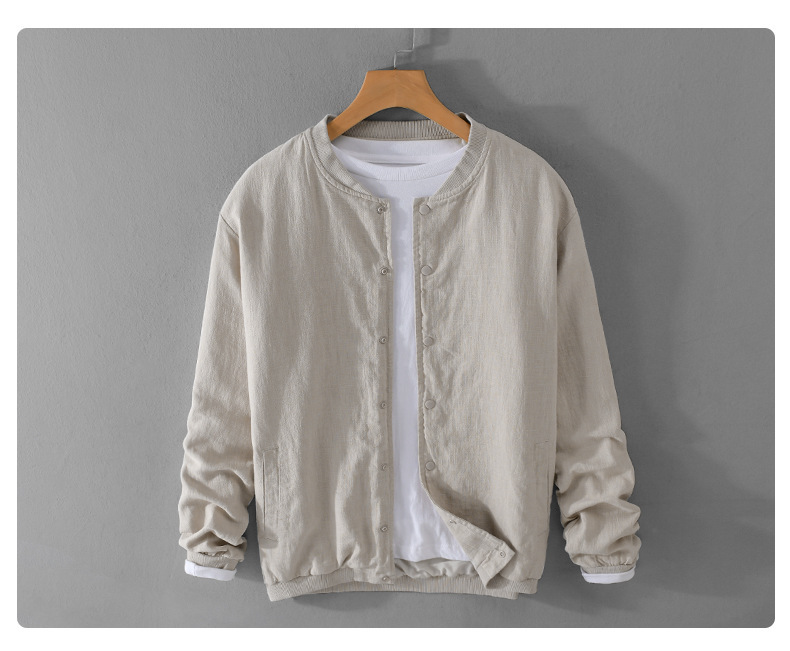 봄과 가을 남성 린넨 재킷 코트 심플 스탠드 칼라 캐주얼 청소년 느슨한 면과 린넨 남성 탑 Y203