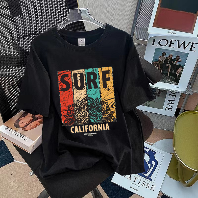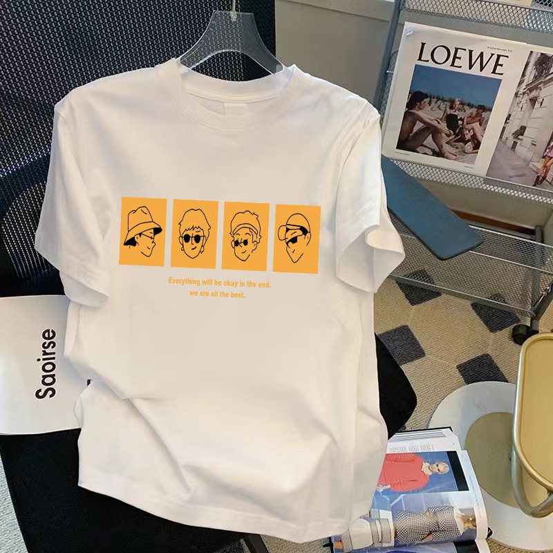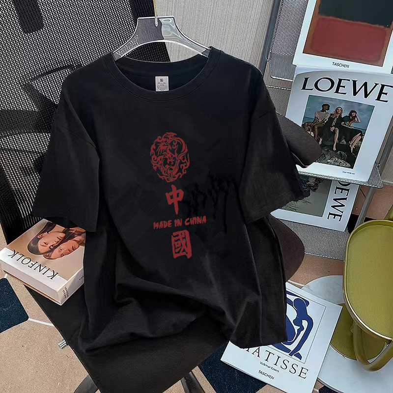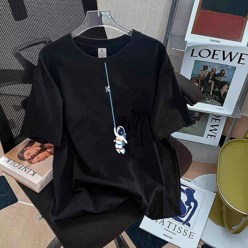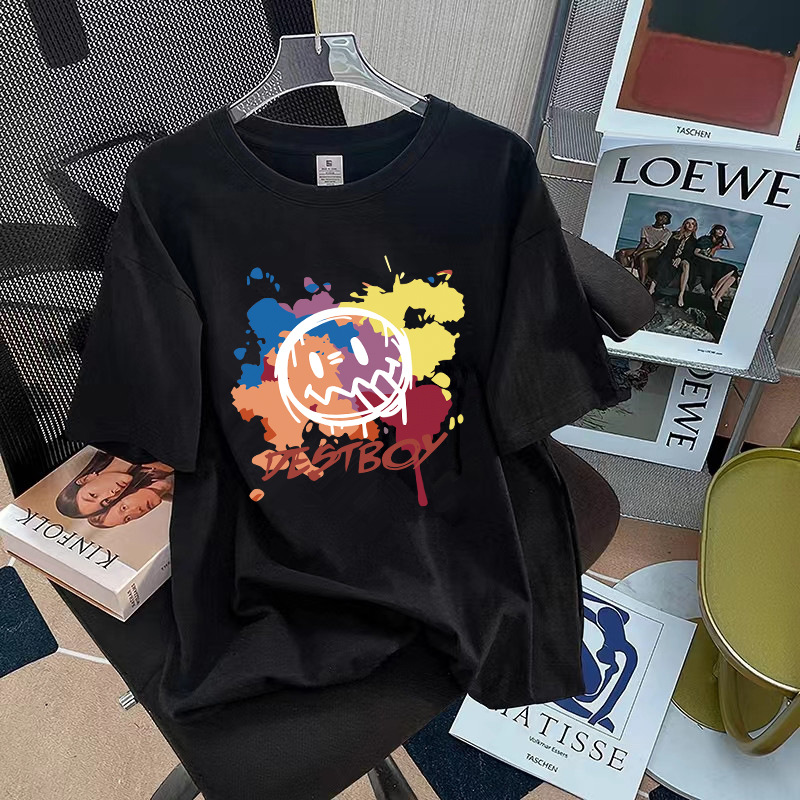 퓨어 코튼 티셔츠 2023 트렌디 브랜드 스포츠 새로운 남자의 느슨한 플러스 사이즈 크루넥 인쇄 인터넷 연예인베이스 탑스토어 가기