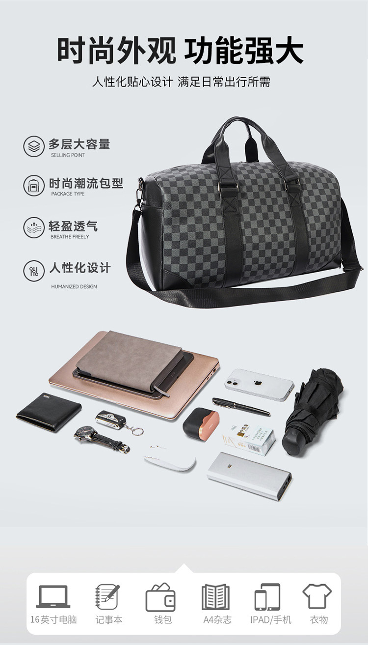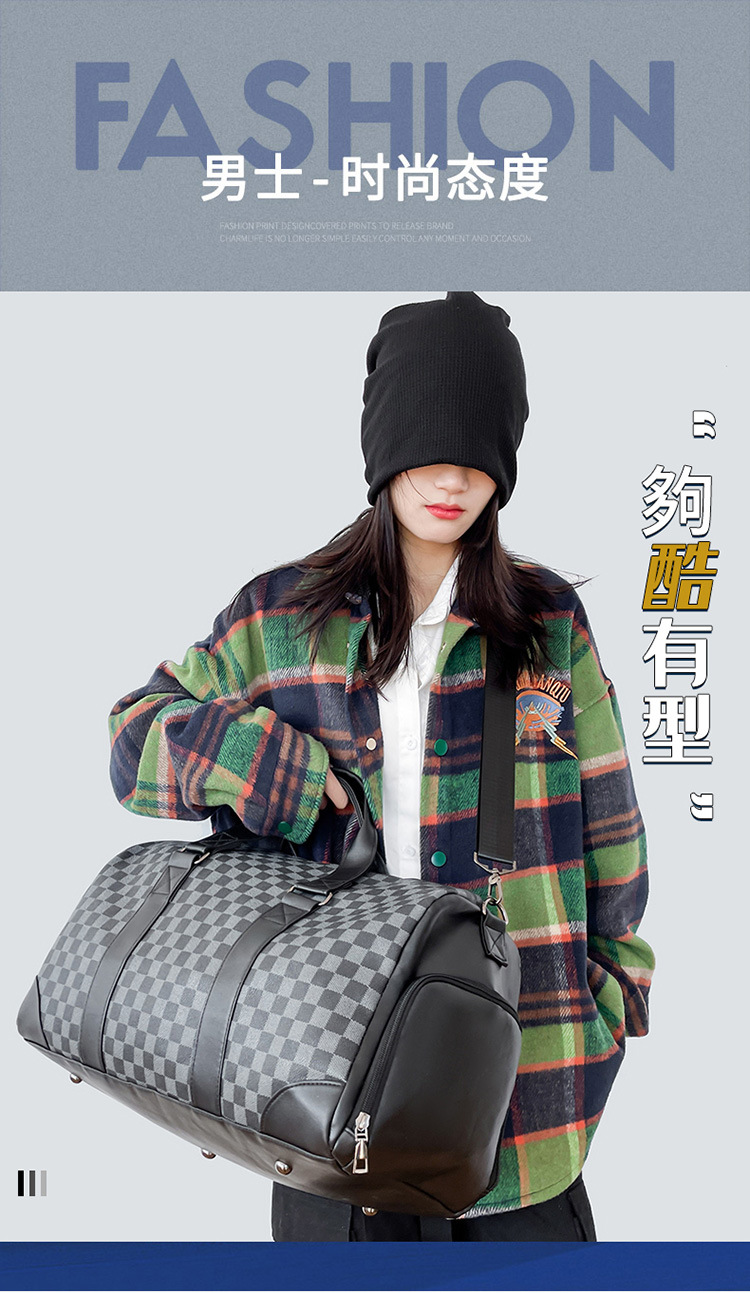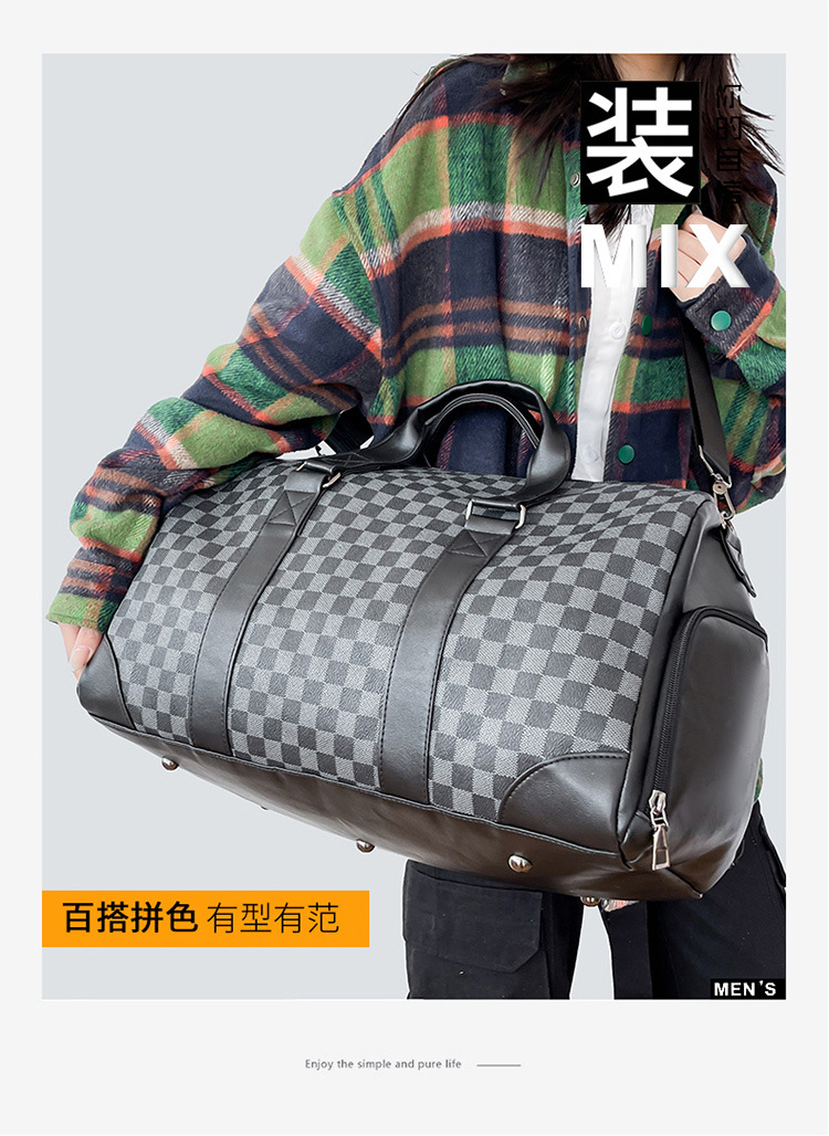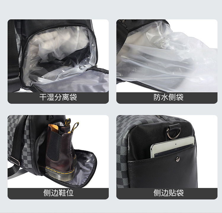 새로운 체크무늬 여행 가방 남성용 휴대용 대용량 출장 수납 가방 여행용 숄더백 크로스백 피트니스 가방스토어 가기