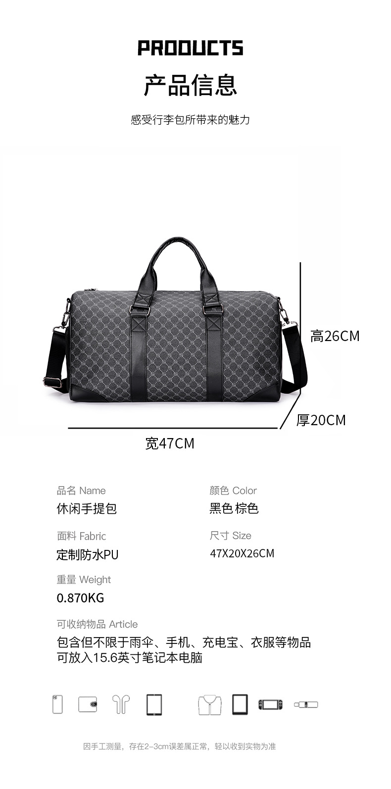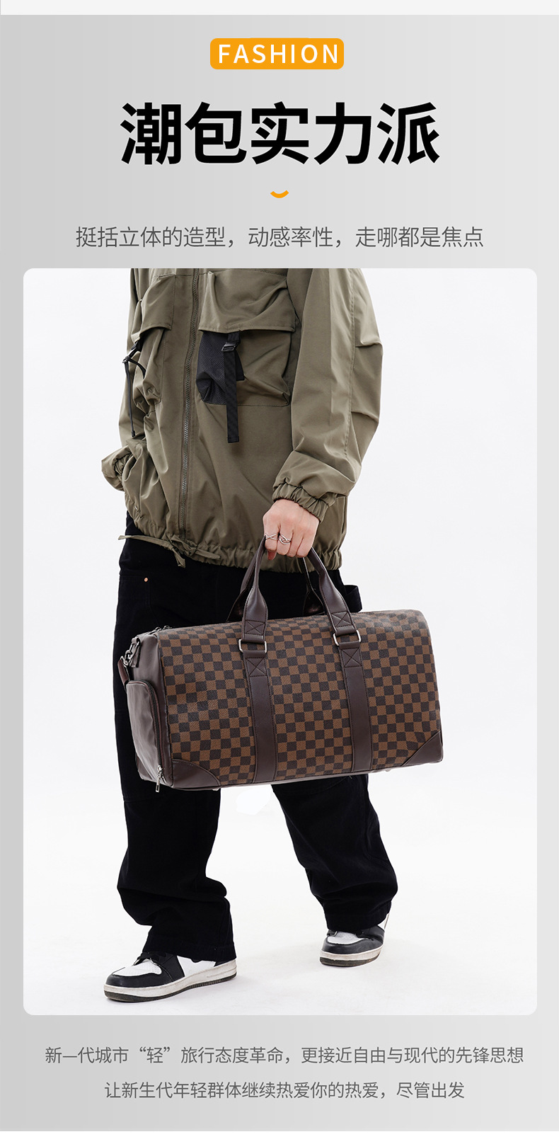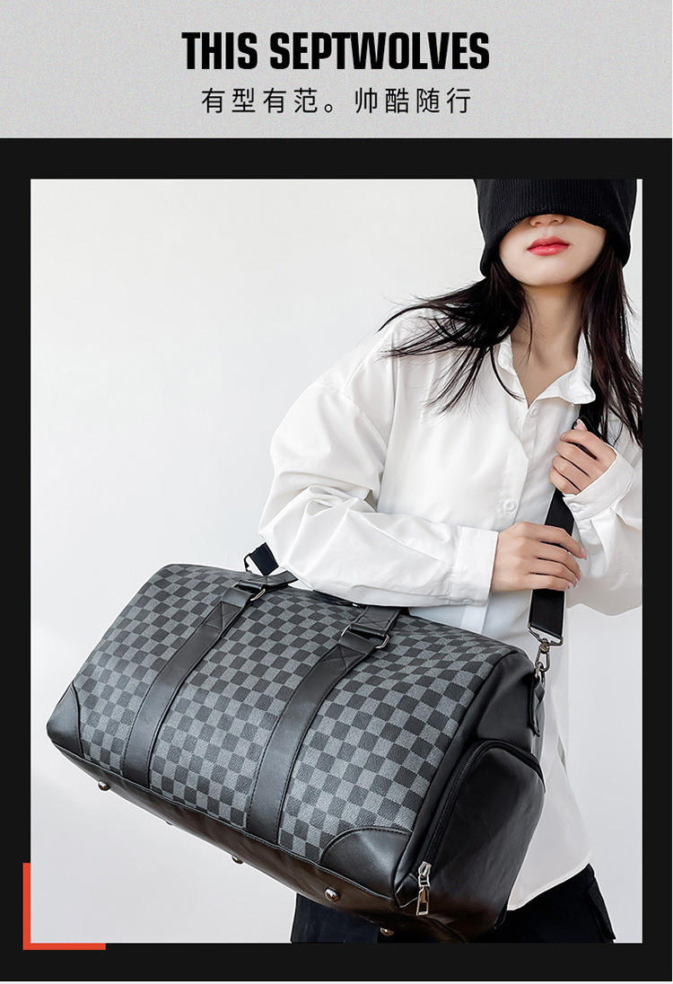 새로운 체크무늬 여행 가방 남성용 휴대용 대용량 출장 수납 가방 여행용 숄더백 크로스백 피트니스 가방스토어 가기