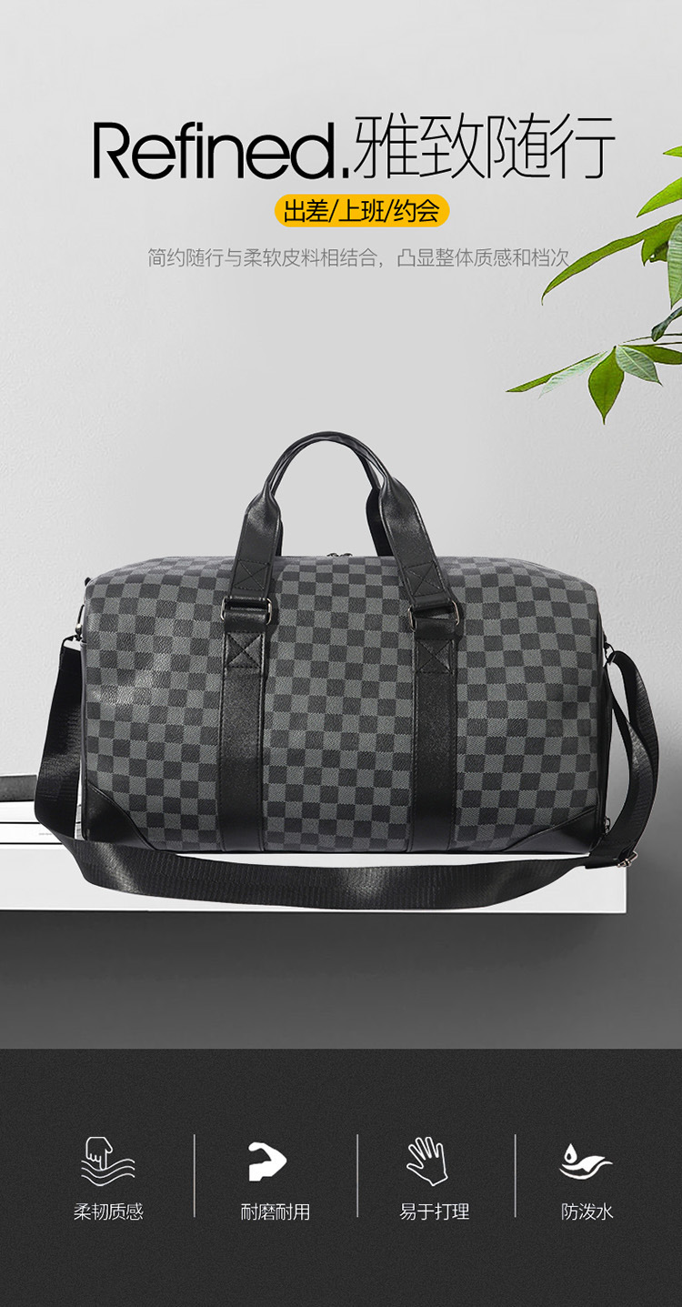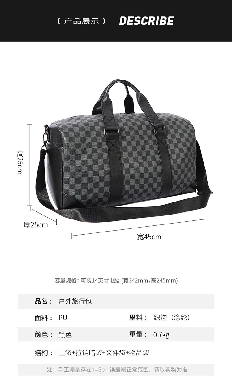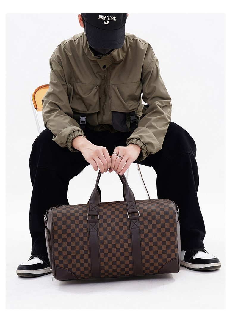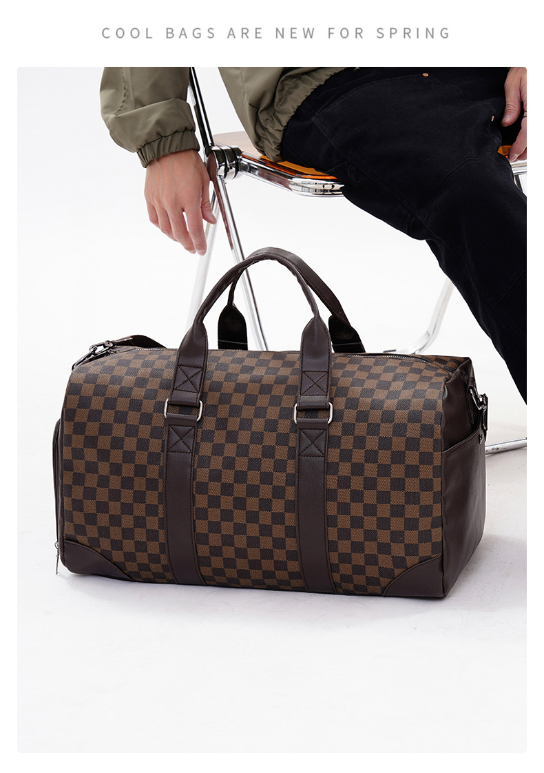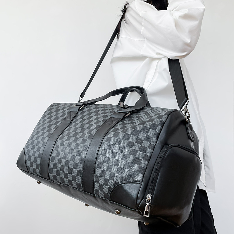 새로운 체크무늬 여행 가방 남성용 휴대용 대용량 출장 수납 가방 여행용 숄더백 크로스백 피트니스 가방