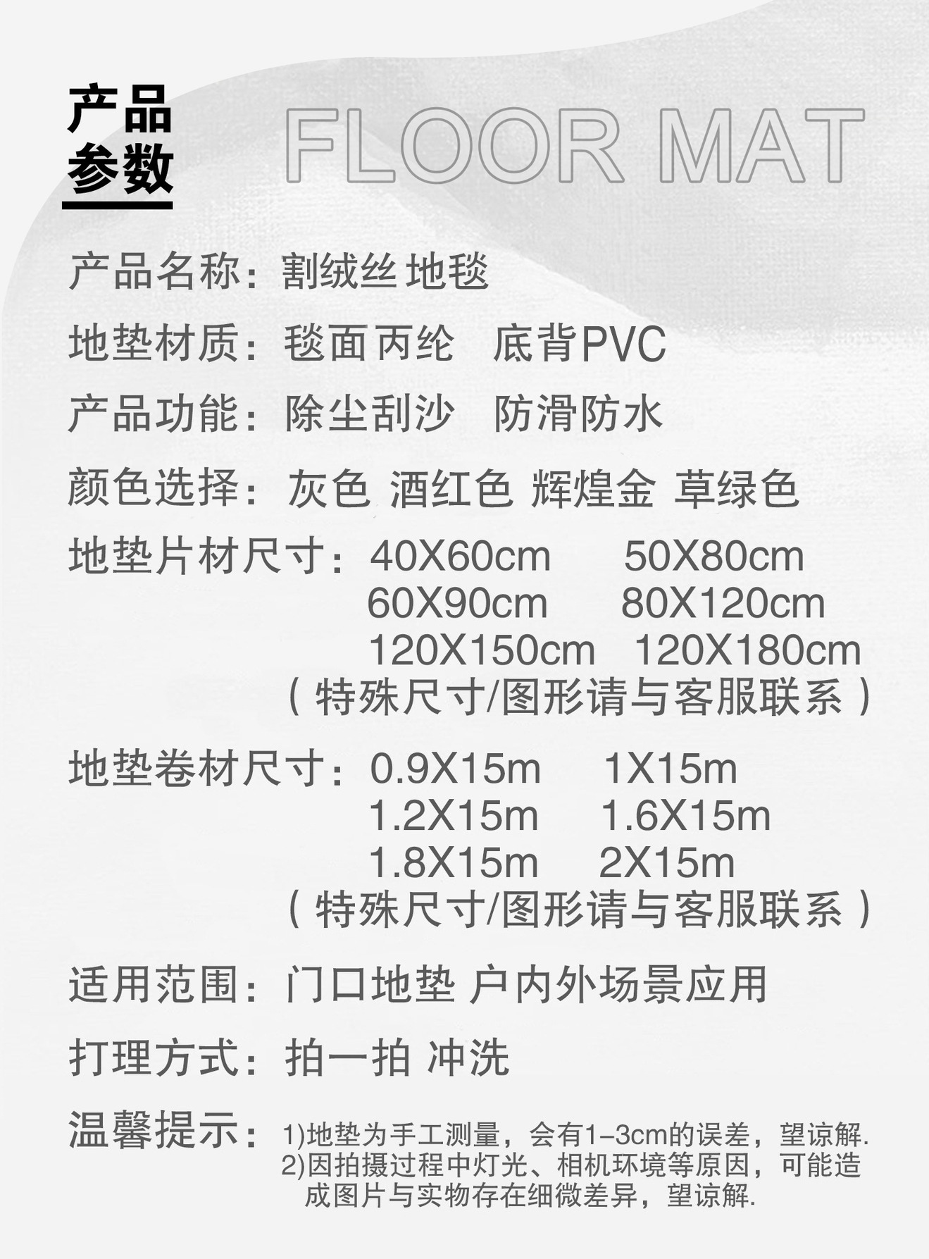 공장 다이렉트 홈 카펫 바닥 매트 미끄럼 방지 매트 호텔 입구 먼지 비비기 흙 발 매트 머리카락 생성