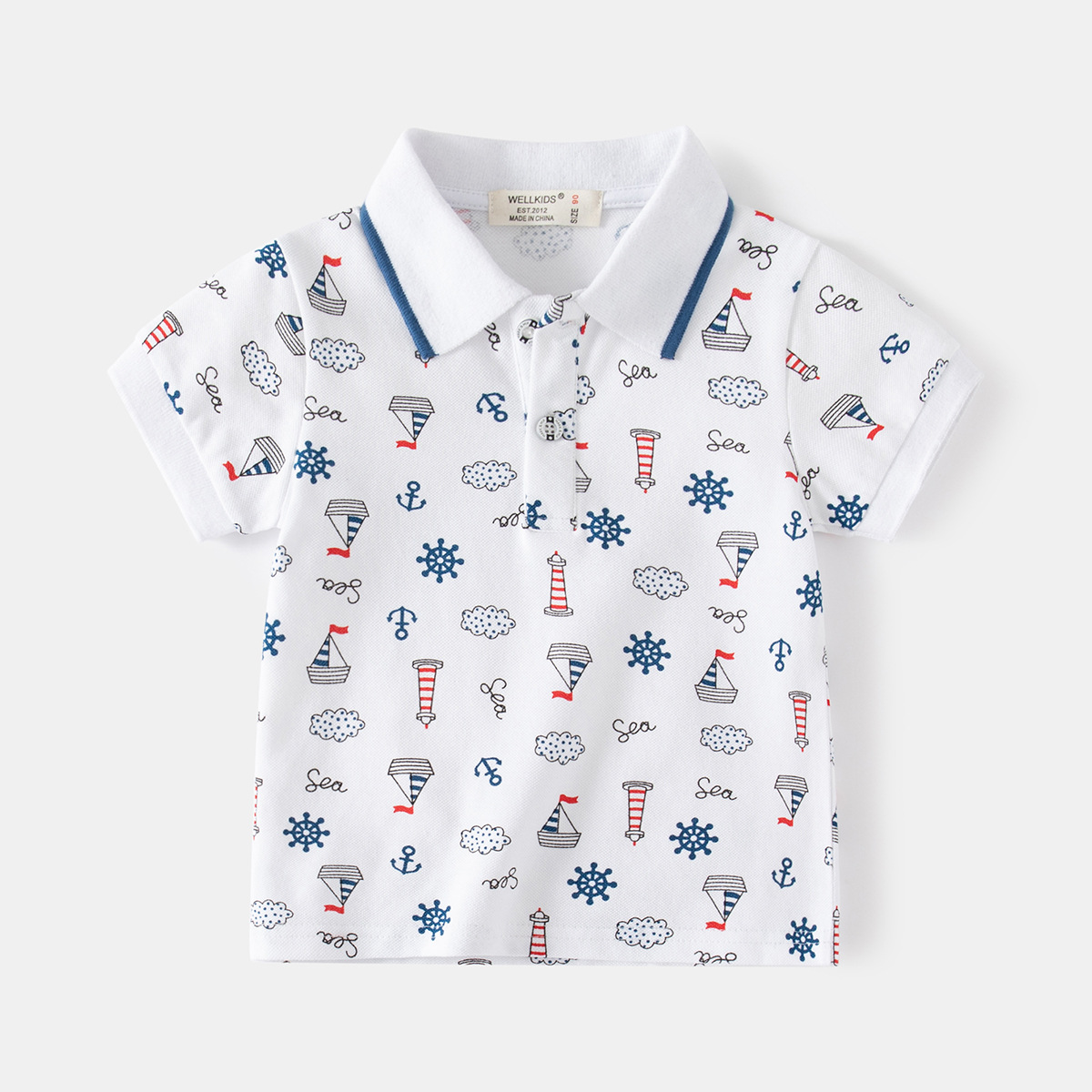 여름 캐주얼 반팔 남아 폴로 셔츠 통기성 편안한 폴로 셔츠 만화 패턴 어린이 옷깃 반팔 셔츠스토어 가기