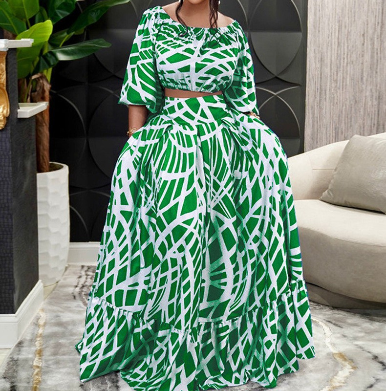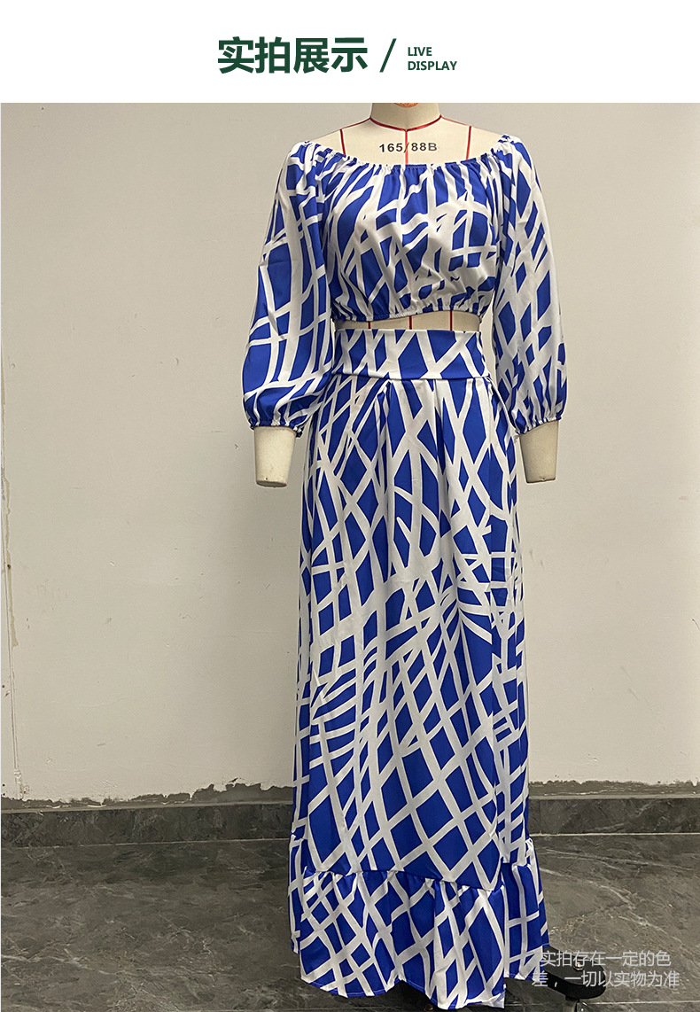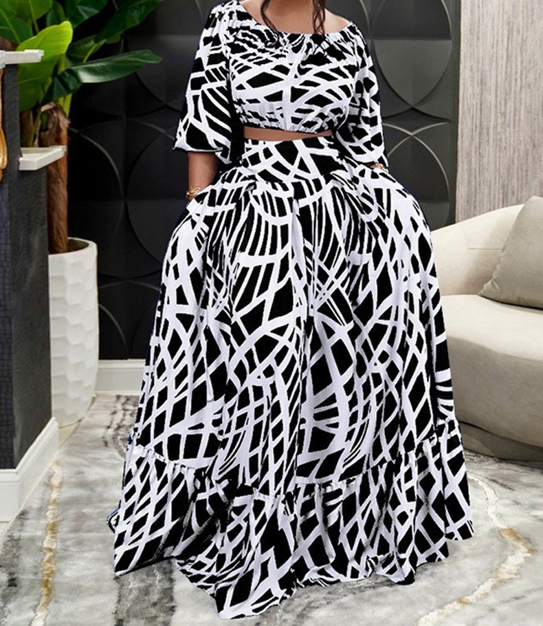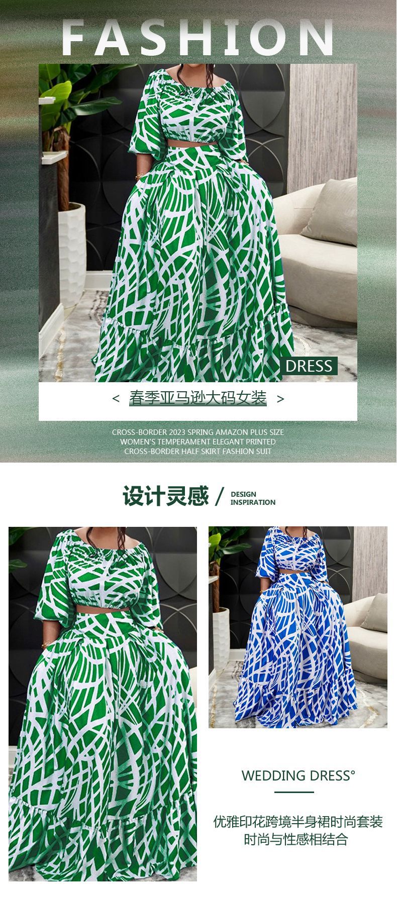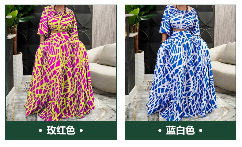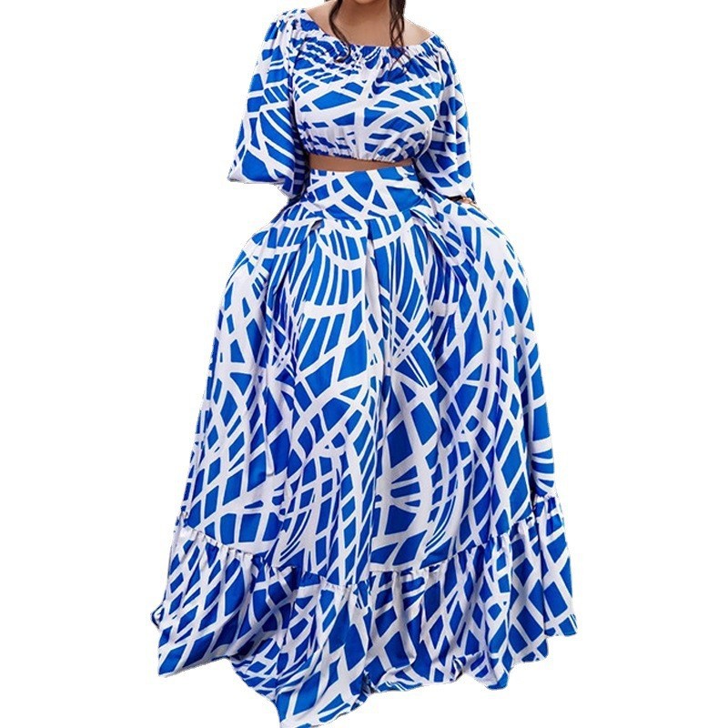 크로스보더 2025 봄 아마존 플러스 사이즈 여성 의류 우아한 프린트 크로스보더 스커트 패션 슈트
