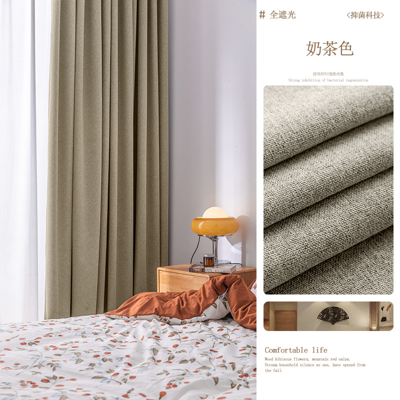 2023 새로운 전체 음영 코튼 린넨 폴리 에스테르 커튼 호텔 침실 발코니 방음 단색 베이 창 커튼 패브릭스토어 가기