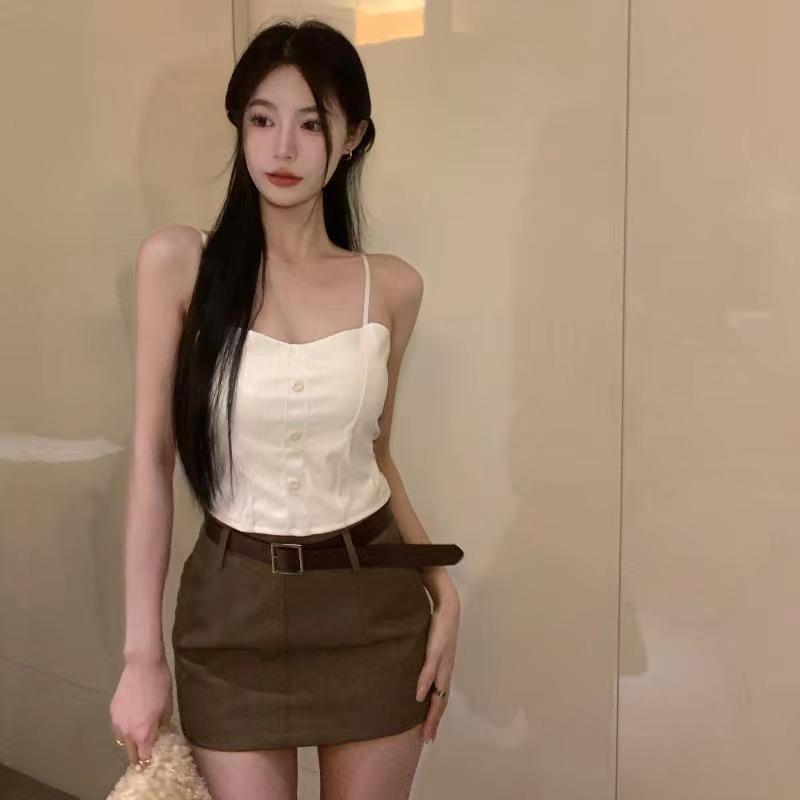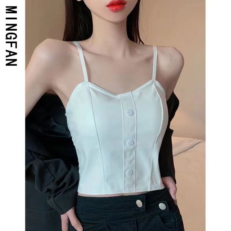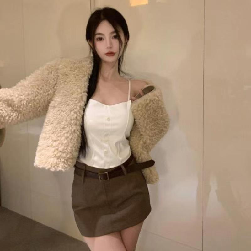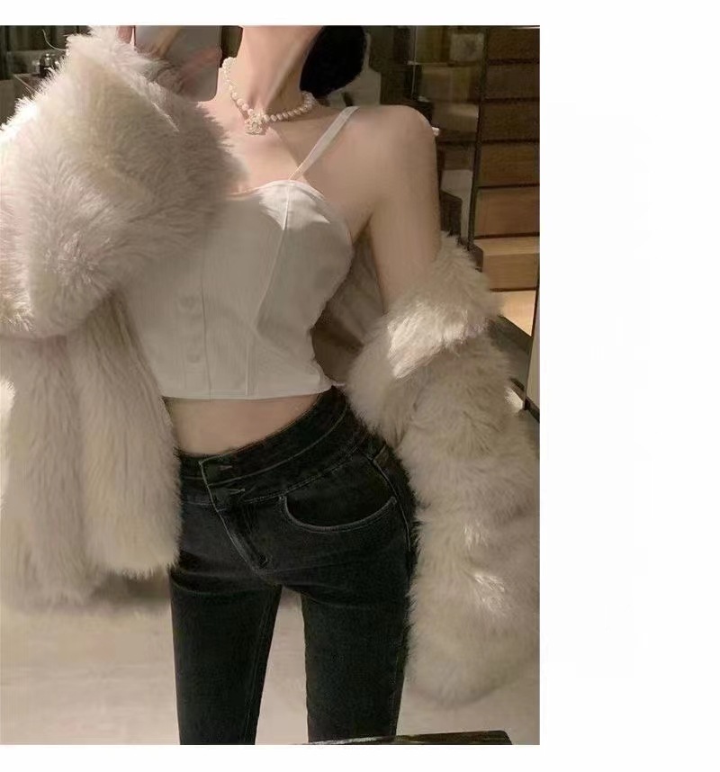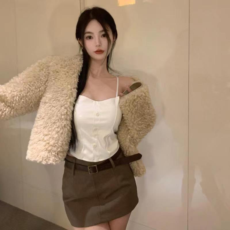 핫 걸스 Puleather 캐미솔 여성용 가을과 겨울 블랙 기질 가슴 패드 짧은 내부 탑 베이스 셔츠 겉옷