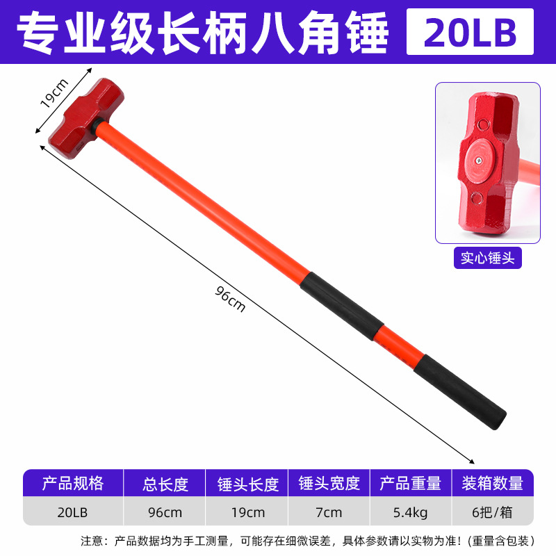 Luwei 도구 충격 방지 망치 8LB 팔각형 망치 건설 타악기 플라스틱 충격 방지 망치 망치 망치 망치스토어 가기