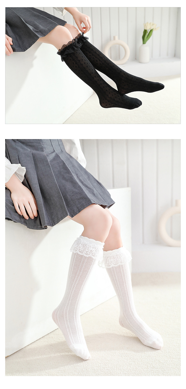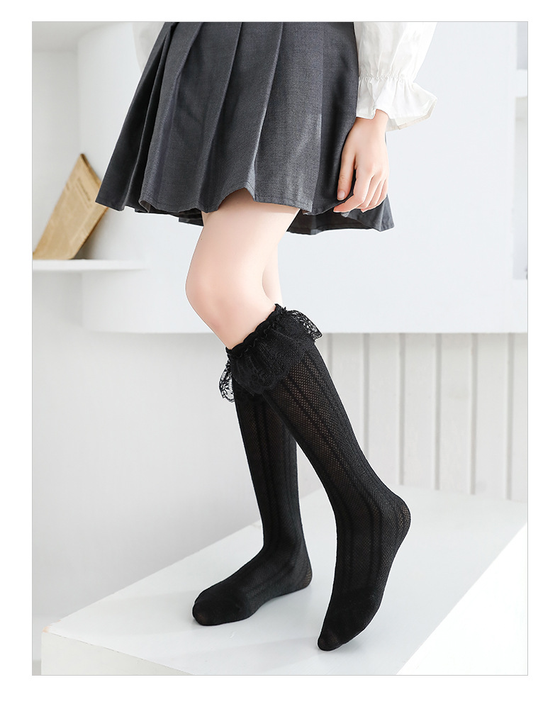 어린이 양말 여름 초박형 소녀 스타킹 레이스 양말 봄 아기 중공 메쉬 높은 양말