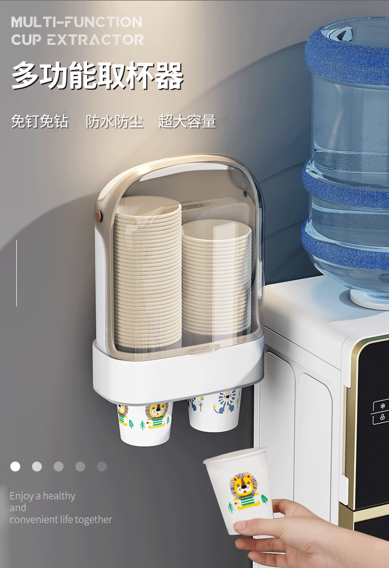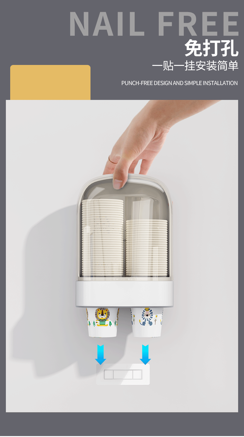 일회용 컵 피커 가정용 벽걸이 형 종이 컵 피커 랙 방진 펀치 프리 컵 보관 랙
