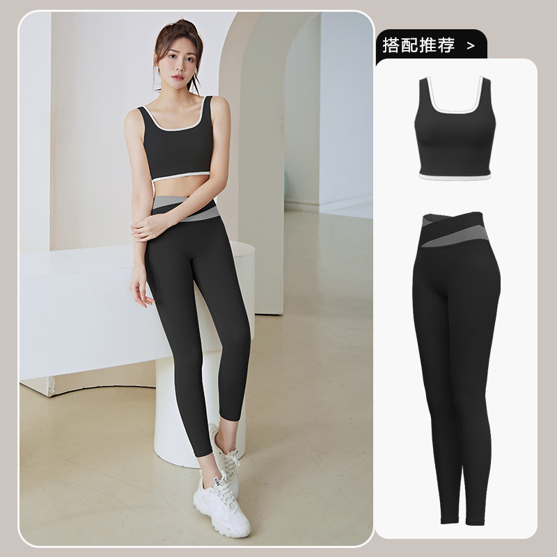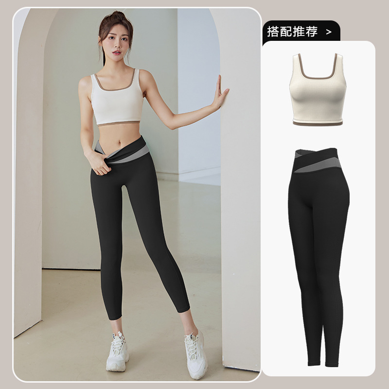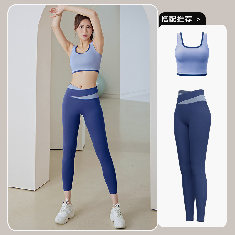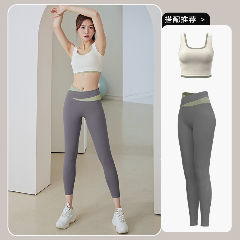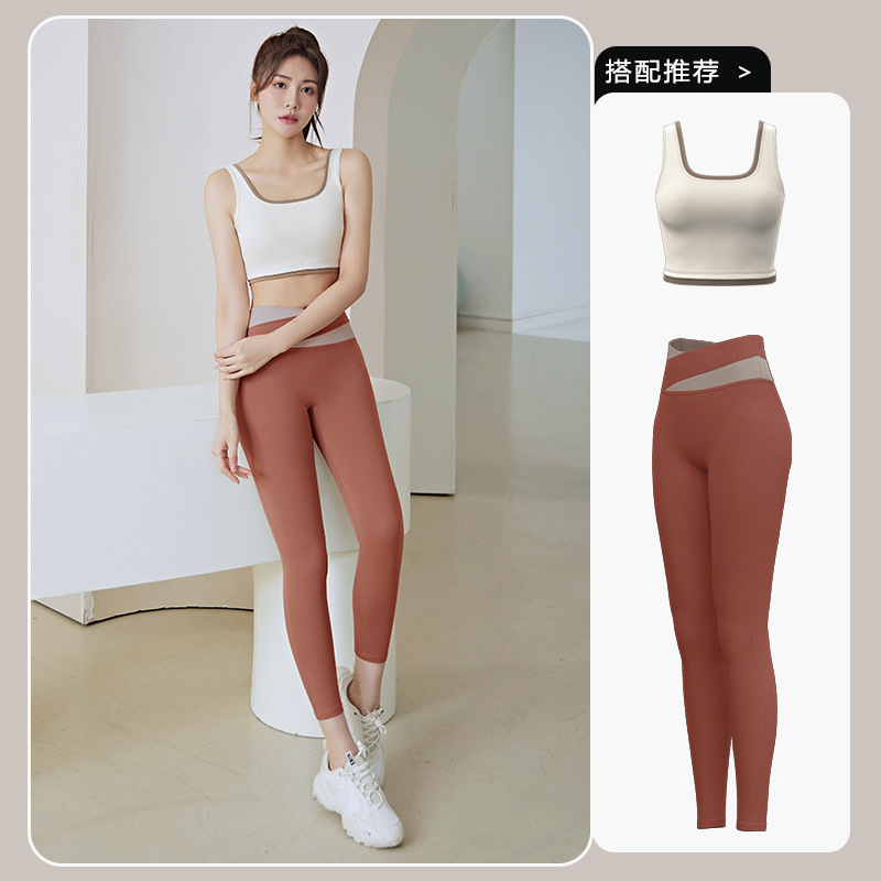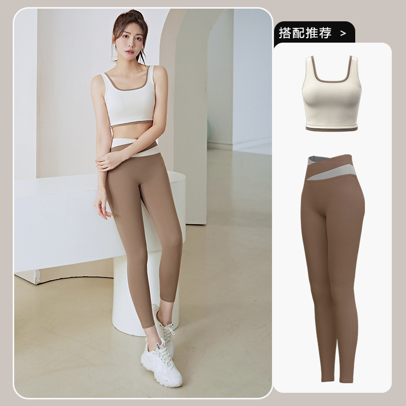 주이탕 봄 여름 신상 컬러블록 누드톤 타이트 하이웨이스트 슬림핏 러닝 스포츠 피트니스 요가복 세트