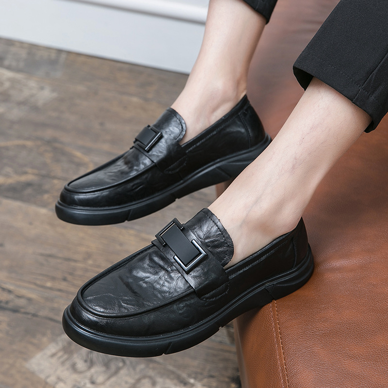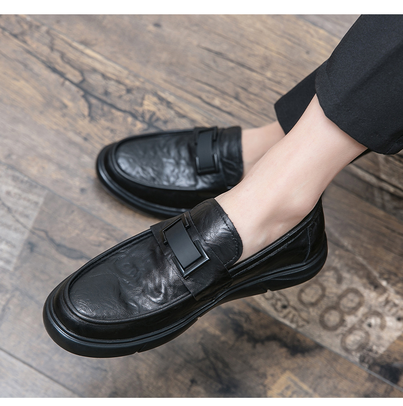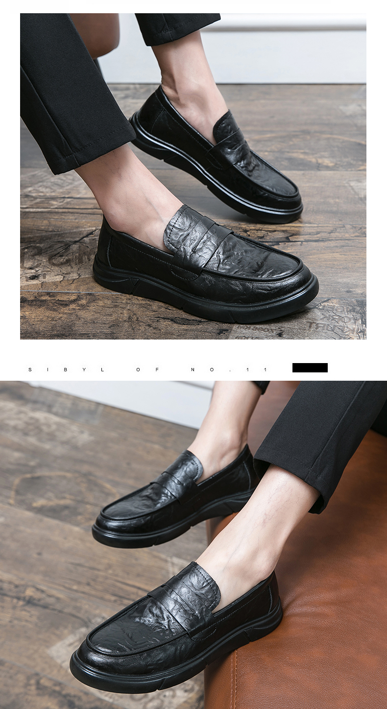 2022 새로운 남성 캐주얼 가죽 신발 한국 스타일 영국 정품 가죽 슬립온 남성 신발 통기성 모든 일치 유행 로퍼