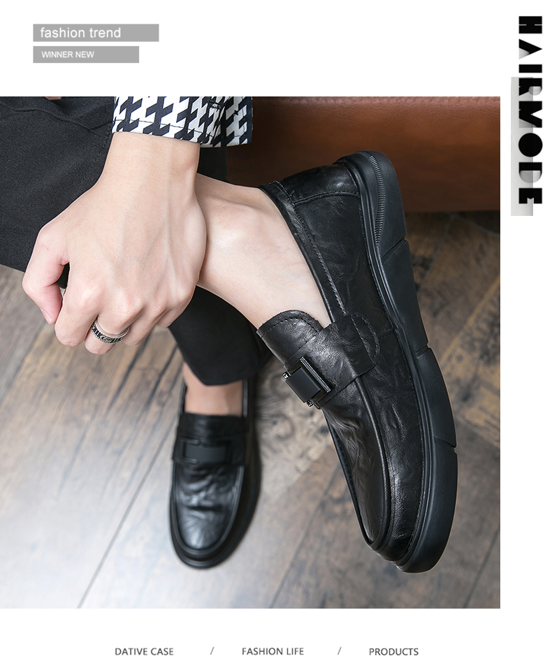 2022 새로운 남성 캐주얼 가죽 신발 한국 스타일 영국 정품 가죽 슬립온 남성 신발 통기성 모든 일치 유행 로퍼스토어 가기