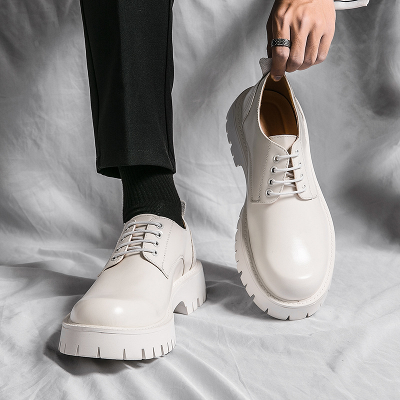 트렌디 브랜드 블랙 라운드 발가락 작은 가죽 신발 남자의 영국 스타일 가을과 겨울 새로운 비즈니스 원피스 모든 일치 두꺼운 단독 높이 증가 세트 신발스토어 가기