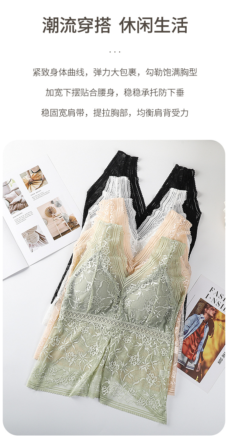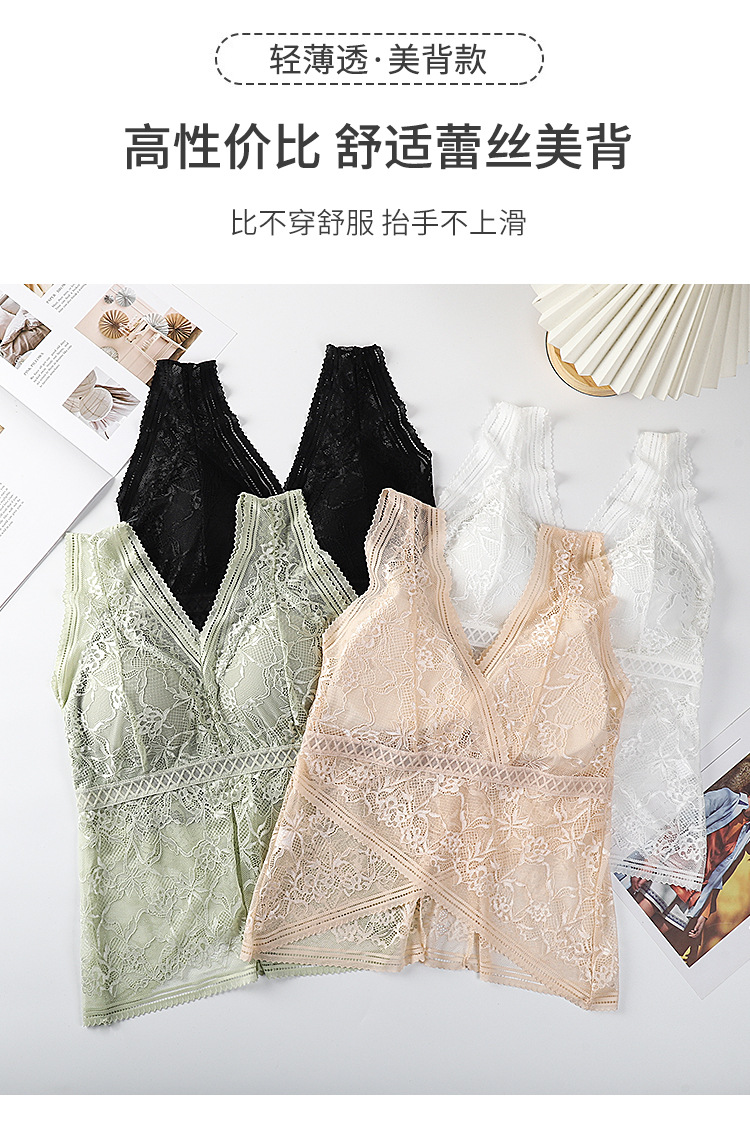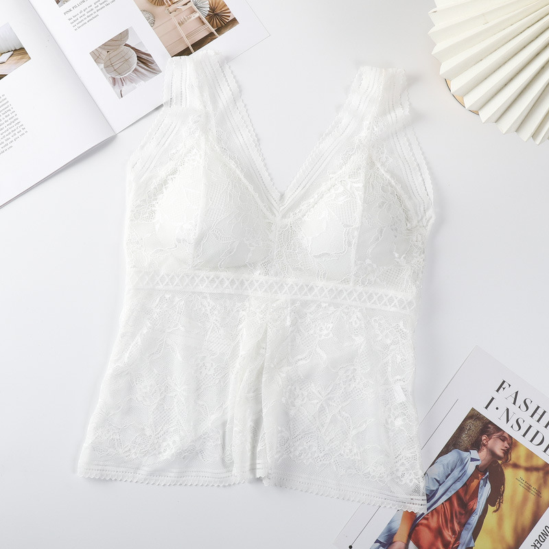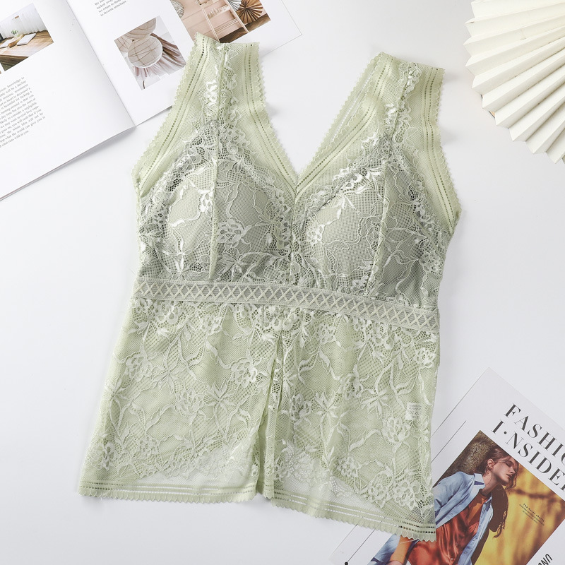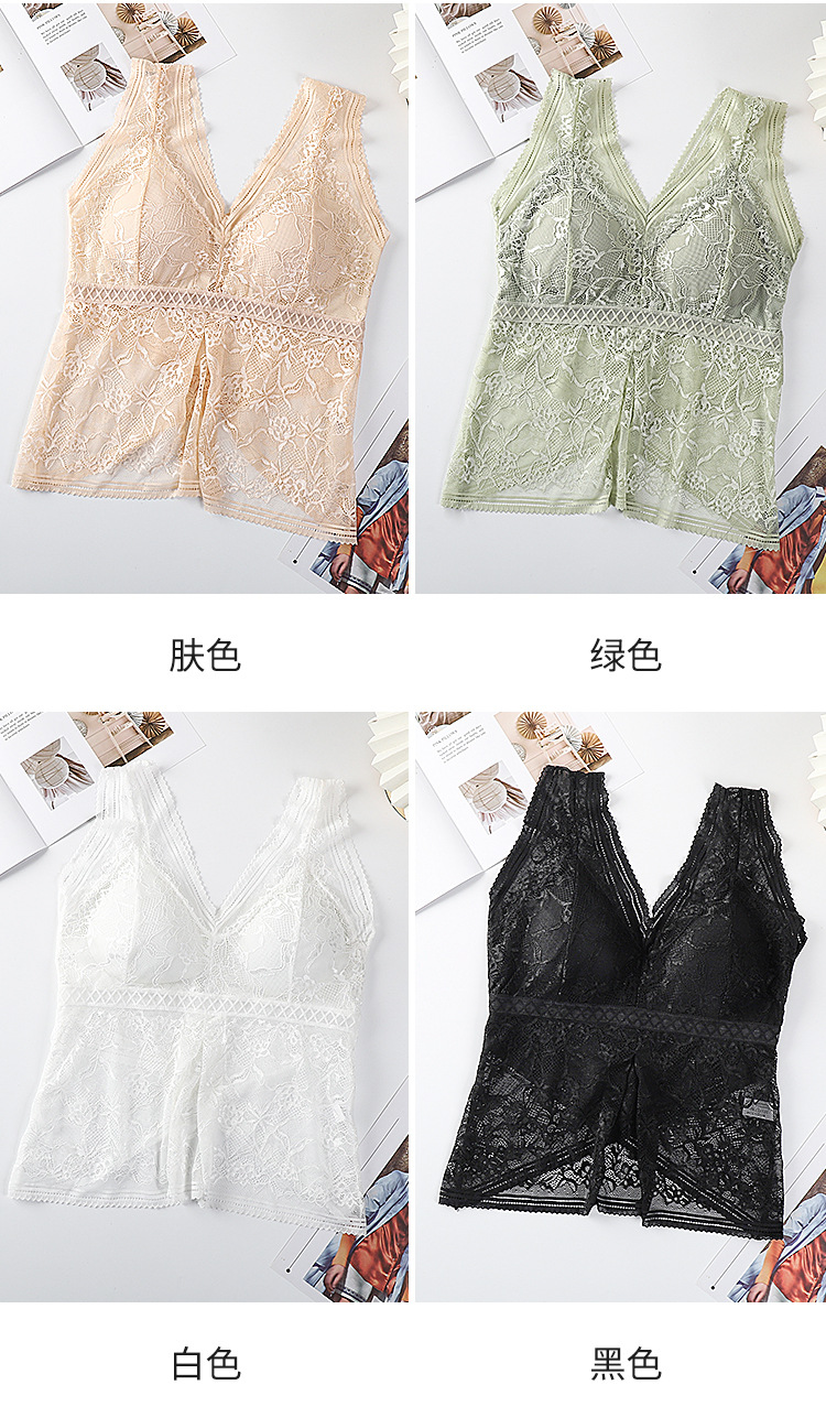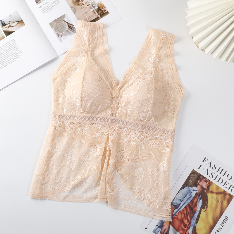 섹시한 레이스 조끼 아름다운 뒤 여자의 겉옷 여름 얇은 유행 틈새베이스 셔츠 깊은 V 내부 슬링 가슴 패드
