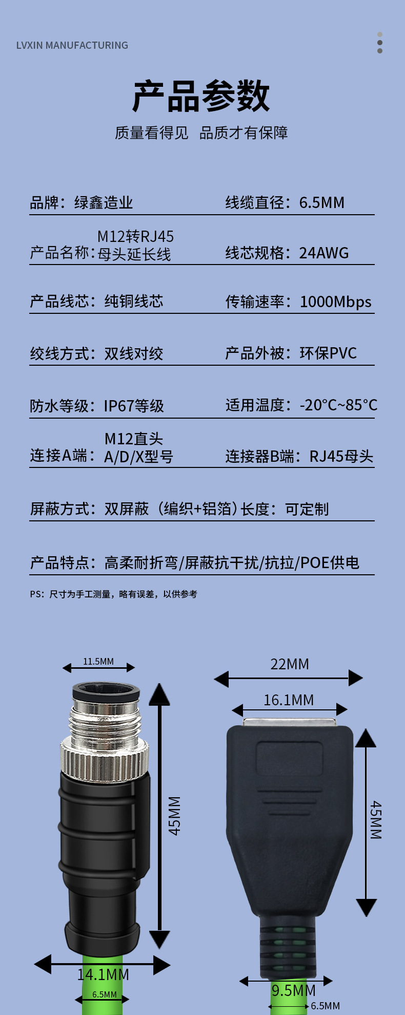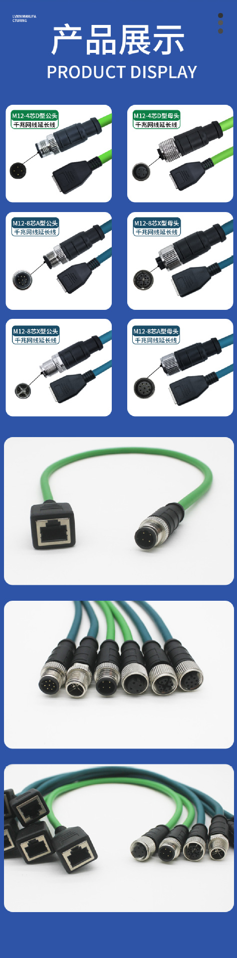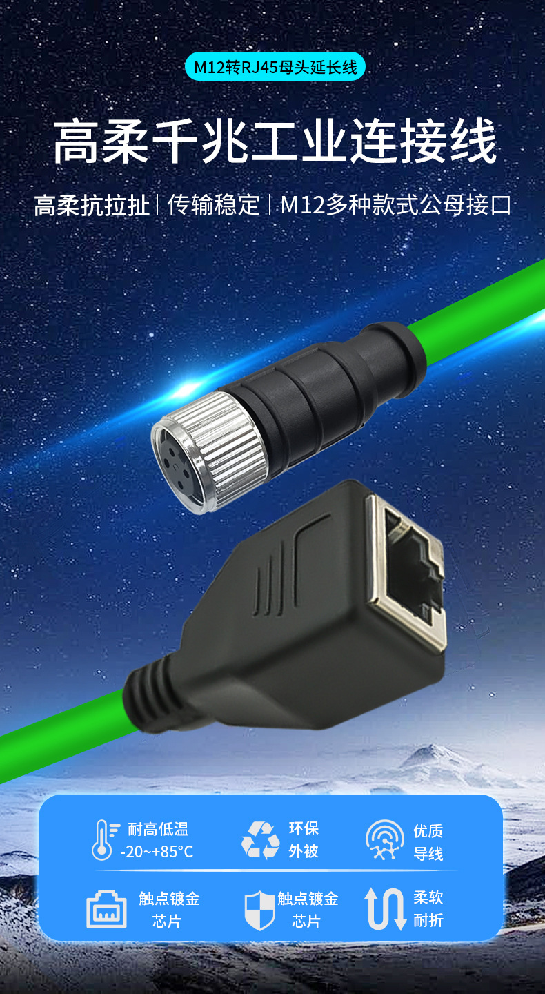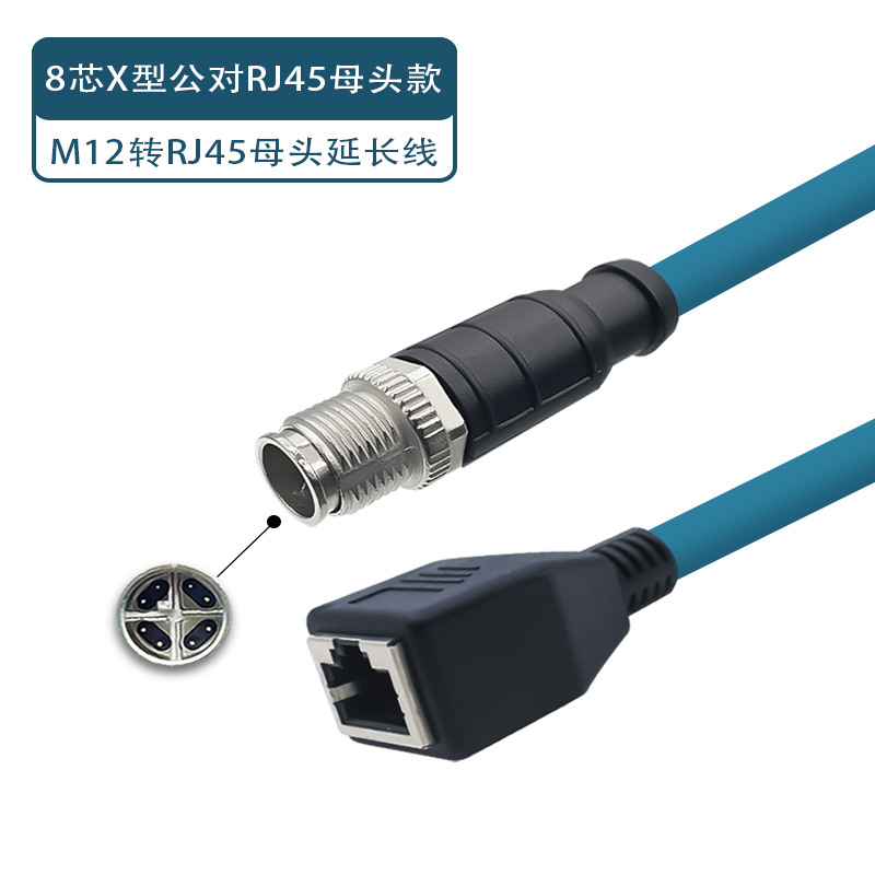 M12-RJ45 암 기가비트 확장 네트워크 케이블 4핀 8핀 ADX 유형 커넥터 코딩 케이블 암수 확장 케이블스토어 가기