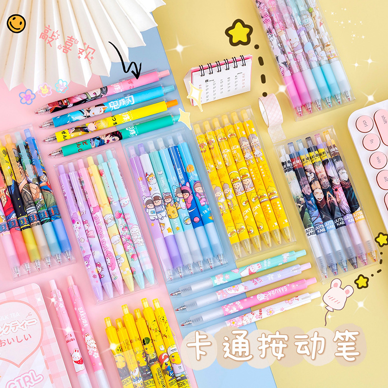 In 푸시 펜 박스 6 팩 만화 푸시 젤 펜 학생용 푸시 타입 워터 펜 블랙 사인 펜스토어 가기
