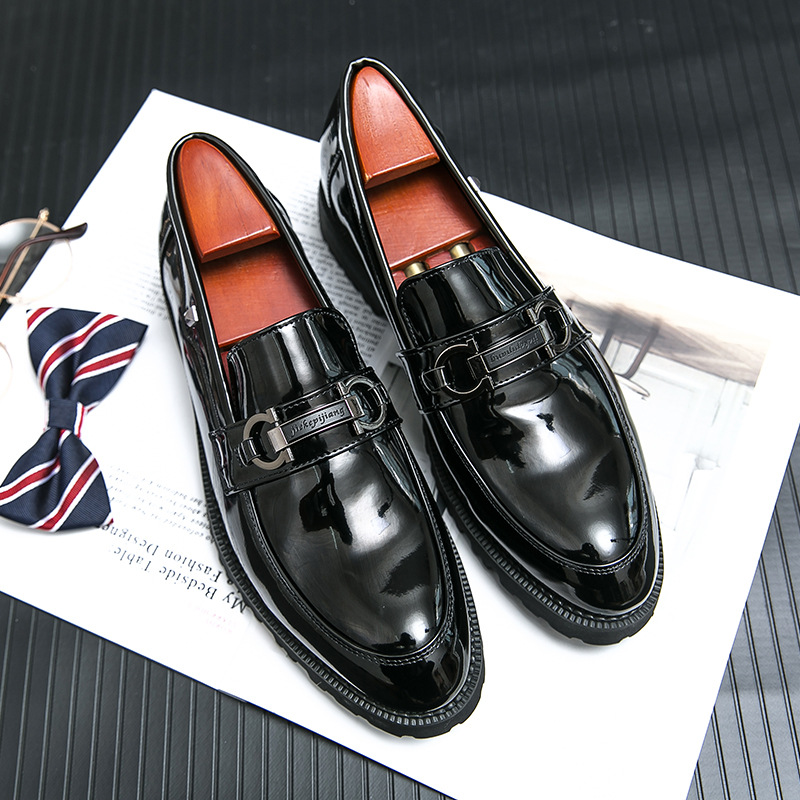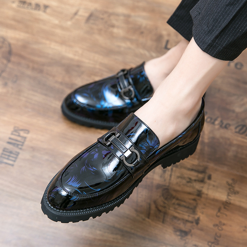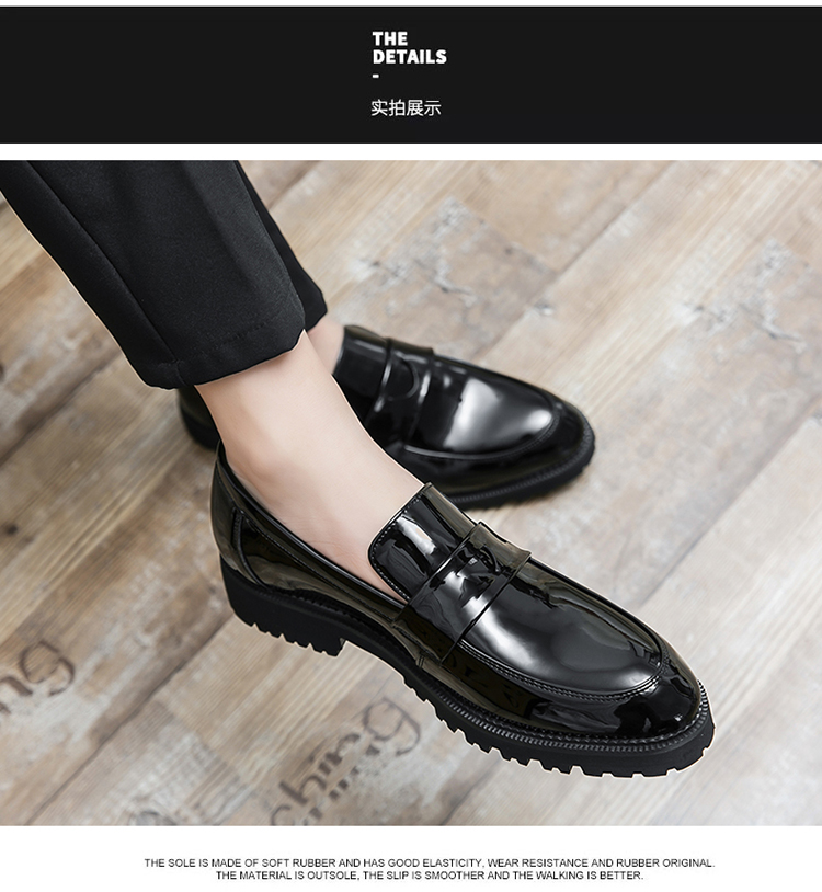 캐주얼 가죽 신발 남성용 고급 두꺼운 밑창 높이 슬립온 신발 복고풍 뾰족한 영국 스타일 헤어 스타일리스트 남성 신발스토어 가기
