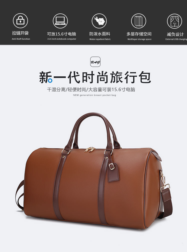 한국식 새로운 스타일 여행 가방 대용량 휴대용 여행 수하물 가방 건조하고 젖은 별도의 부드러운 가죽 단색 체육관 가방