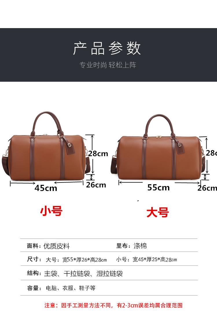 한국식 새로운 스타일 여행 가방 대용량 휴대용 여행 수하물 가방 건조하고 젖은 별도의 부드러운 가죽 단색 체육관 가방스토어 가기