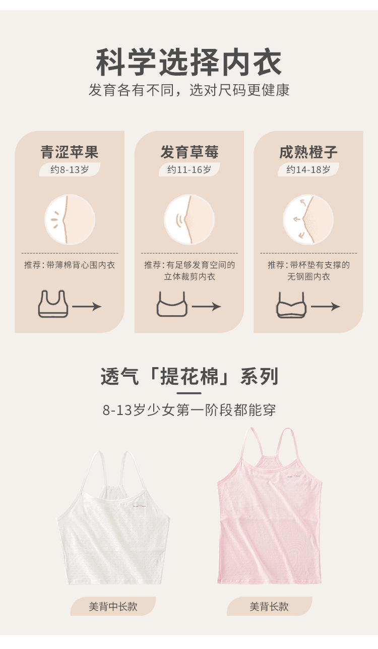 여아 개발 기간 여아 조끼 1 단계 속옷 여아 브라 없음 스틸 링 튜브 탑 사춘기 조끼 학생스토어 가기