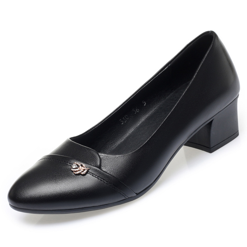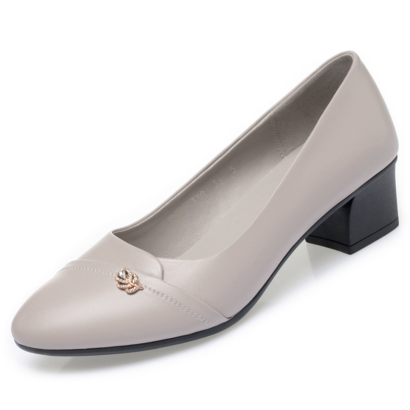 엄마 신발 싱글 슈즈 부드러운 가죽 부드러운 바닥 낮은 굽 여성 신발 중년 봄과 가을 부드러운 가죽 작업 신발 여름 여성용 가죽 신발