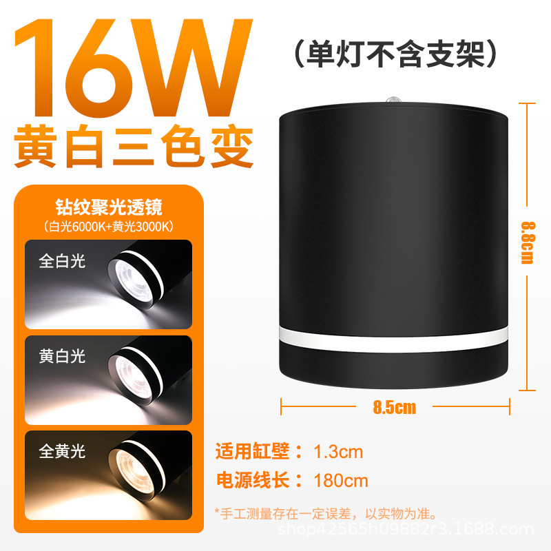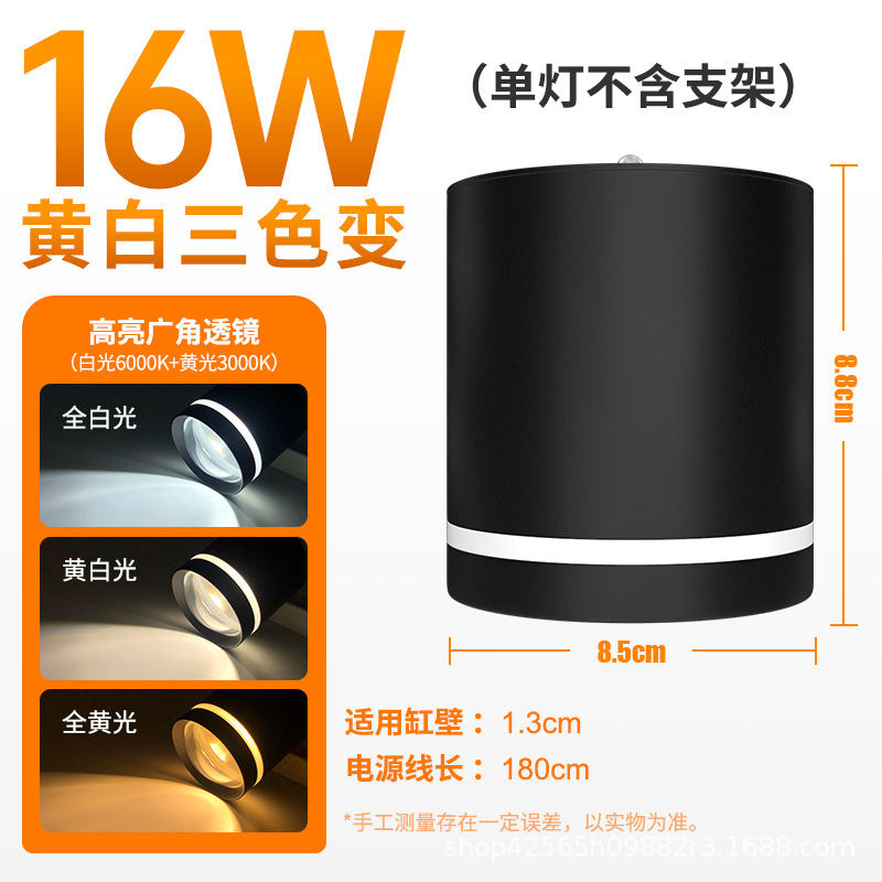 • 블랙 16W 화이트 옐로우 디밍 남미 다운 라이트 (블랙 브래킷 포함)
