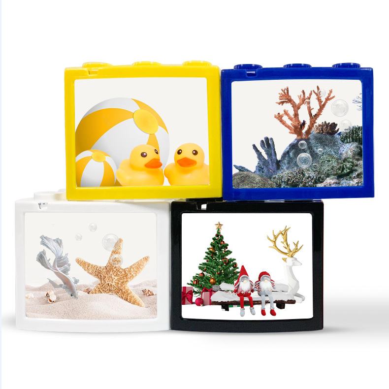 컬러 아크릴 HD 투명 어항 창조적 인 데스크탑 빌딩 블록 양동이 어항 미니 곡선 작은 수족관