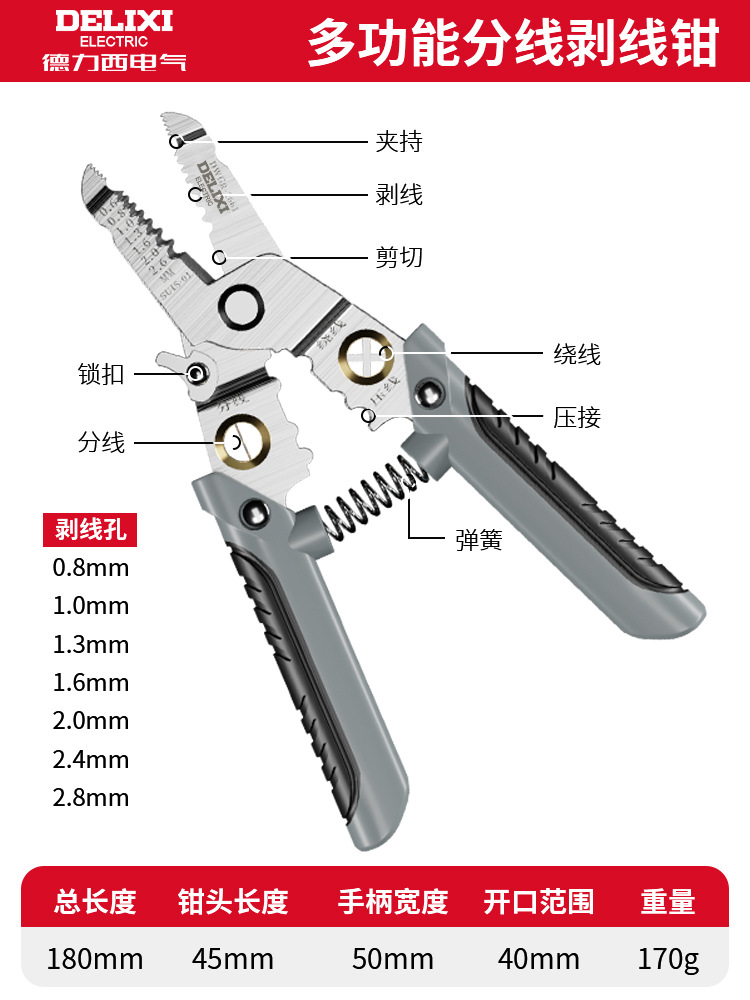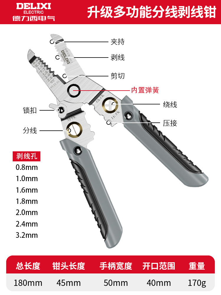 전기 기술자를위한 Delixi 다기능 와이어 스트리핑 및 와이어 분할 펜치 특수 필링 펜치 와이어 압착 펜치 새로운 와인딩 펜치스토어 가기