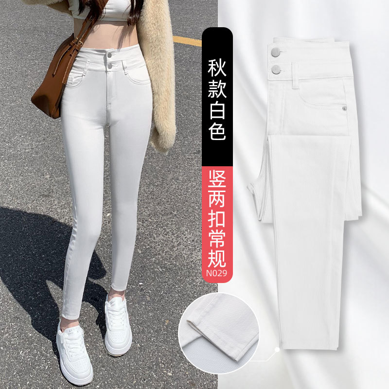 데님 팬츠 봄 가을 여성용 스트레이트 팬츠 2025년 신상 하이웨이스트 슬림핏 펜슬 팬츠 여성용스토어 가기