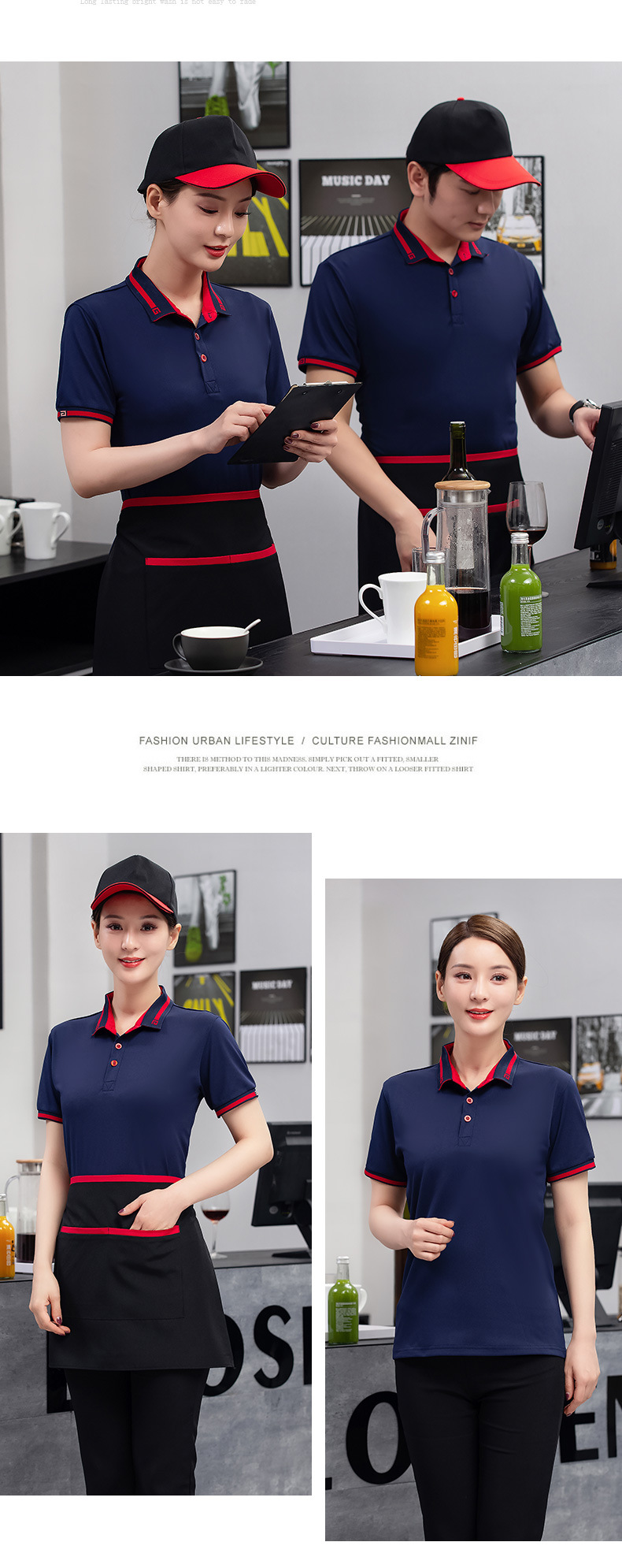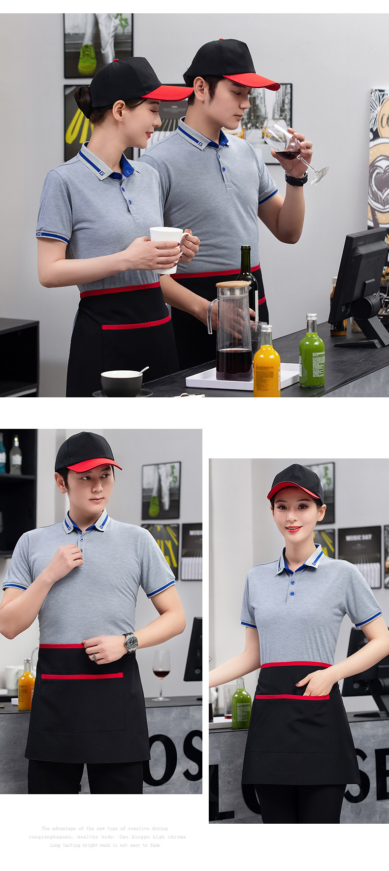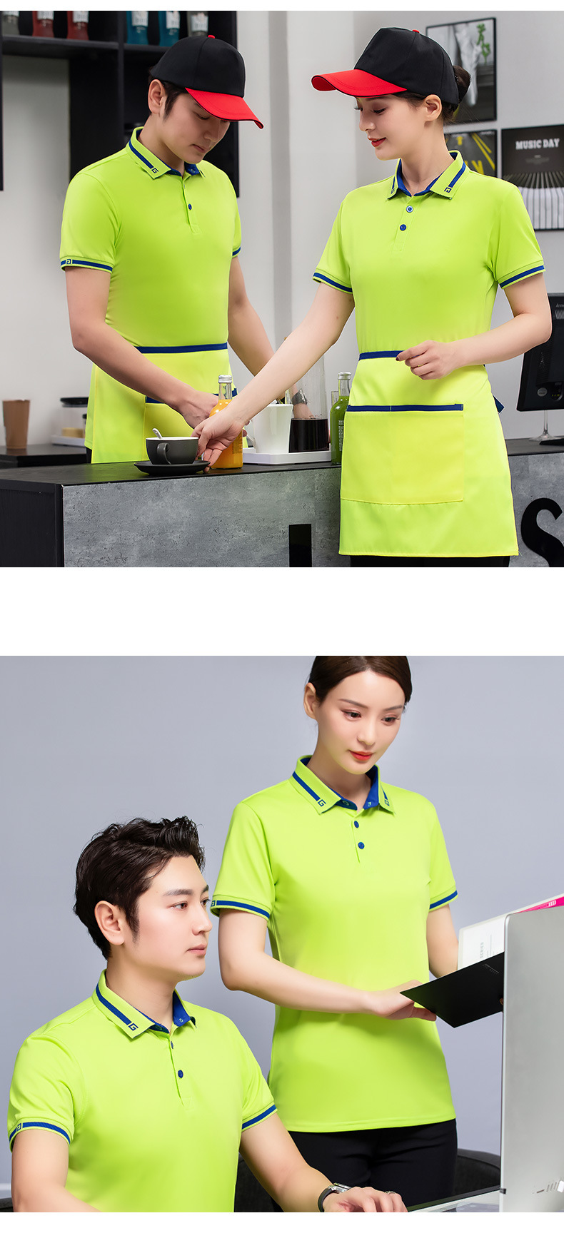 호텔 취사 웨이터 작업복 짧은 소매 여름 밀크 티 레스토랑 레스토랑 냄비 패스트 푸드 레스토랑 슈퍼마켓 작업복 티셔츠스토어 가기