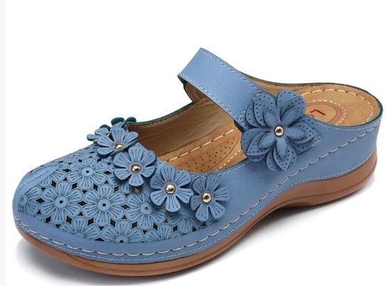 소원 대외 무역 2020 여름 새로운 꽃 여성 샌들 레트로 플랫 라운드 헤드 캐주얼 샌들